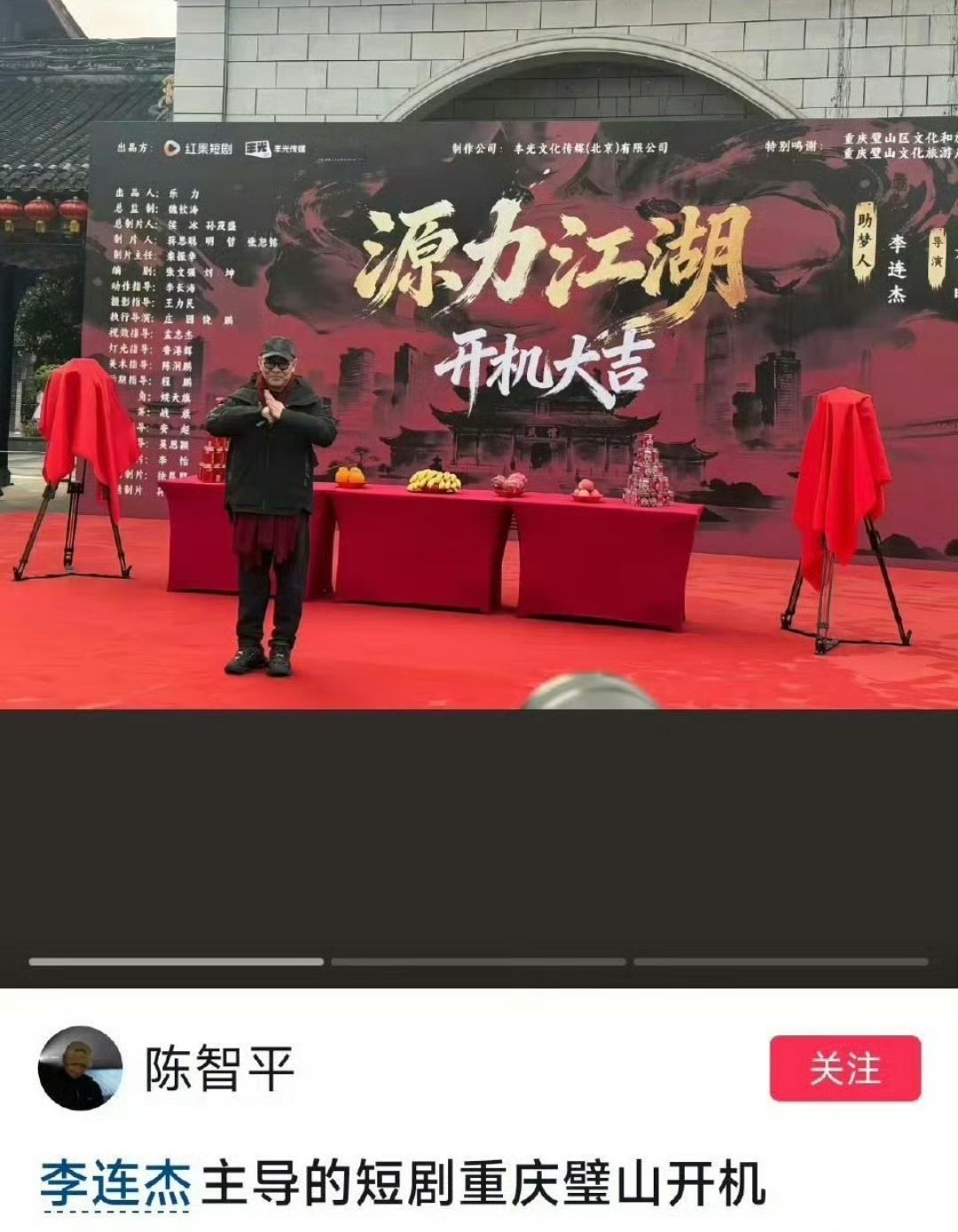 李连杰这是“晚年创业”吗? 天天看他跟女儿拍视频,我都以为他要安享晚年了。 结果人家直接杀进短剧赛道搞起事业了。 1月31号的开机现场,他穿得低调却气场拉满,一句“拍过短剧的都是我前辈”直接鞠躬。 嘴上说着“助梦年轻人”,手里攥着红包给剧组发福利,格局直接拉满了。 都说李连杰是外国国籍,但是人家一把年纪了,还为了中国功夫的发展殚精竭虑。 都能想到靠短剧来弘扬传统文化了,这份精神难道不值得我们敬佩吗?