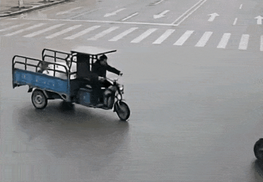两个三轮车相撞,撞击力居然这么大,真是有些超出了我的想象,但是回过头来想一想,又感觉有点不太真实,倒像是AI生成的画面,如果是真实车辆相撞的话,三轮车的前轮也不能这么脆弱呀,一撞就掉了,感觉不太可能,十有八九,这是搞笑的段子,让人真假难辨!