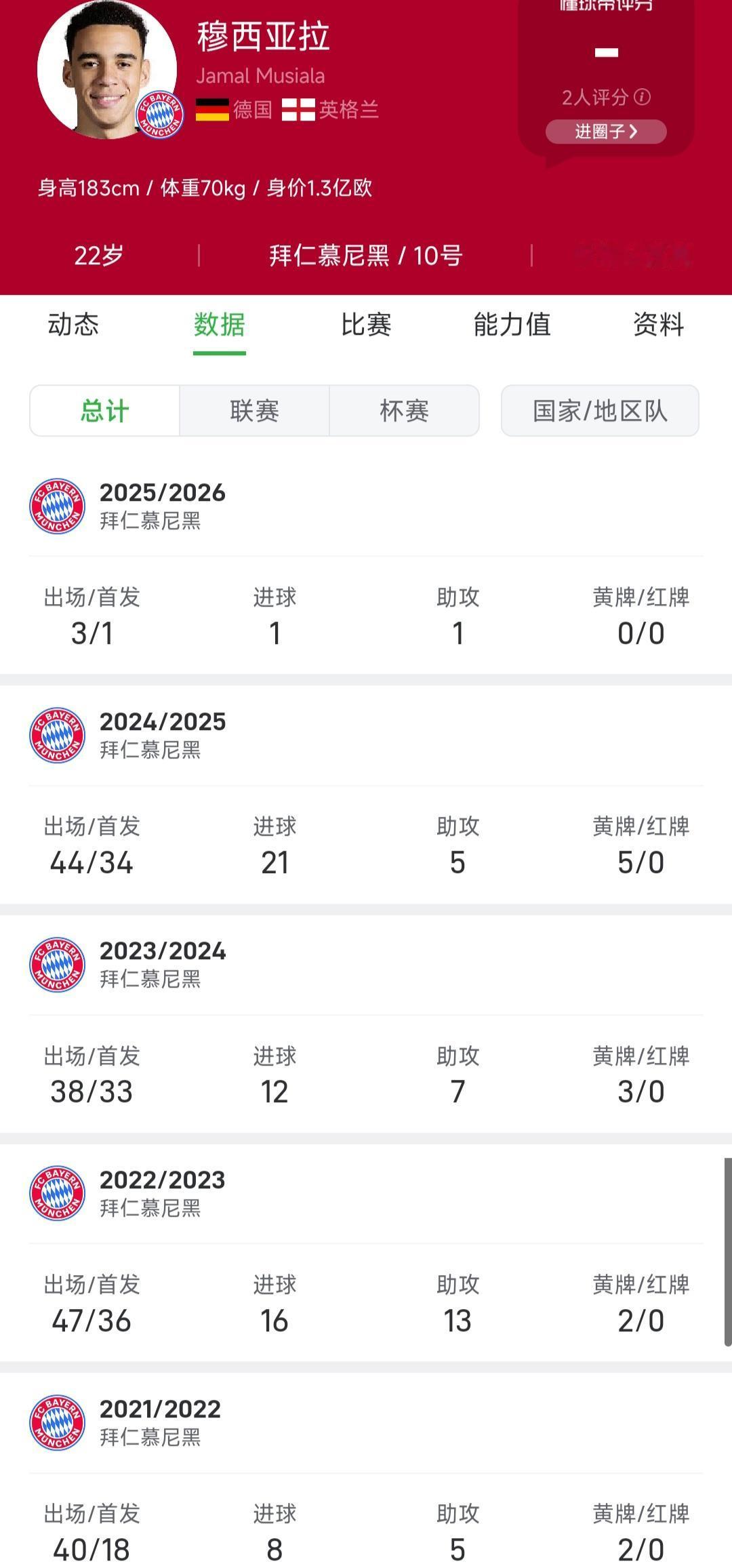 穆西亚拉是很多人心中足坛最强超级新星! 跟亚马尔,内马尔一样的天才。 因为他上赛季21球5助攻很惊艳,18岁就在拜仁踢球,重点培养对象。 1月18号复出,替补有次助攻,前两天欧冠首发有个进球,穆西亚拉值得期待。[大金牙]
