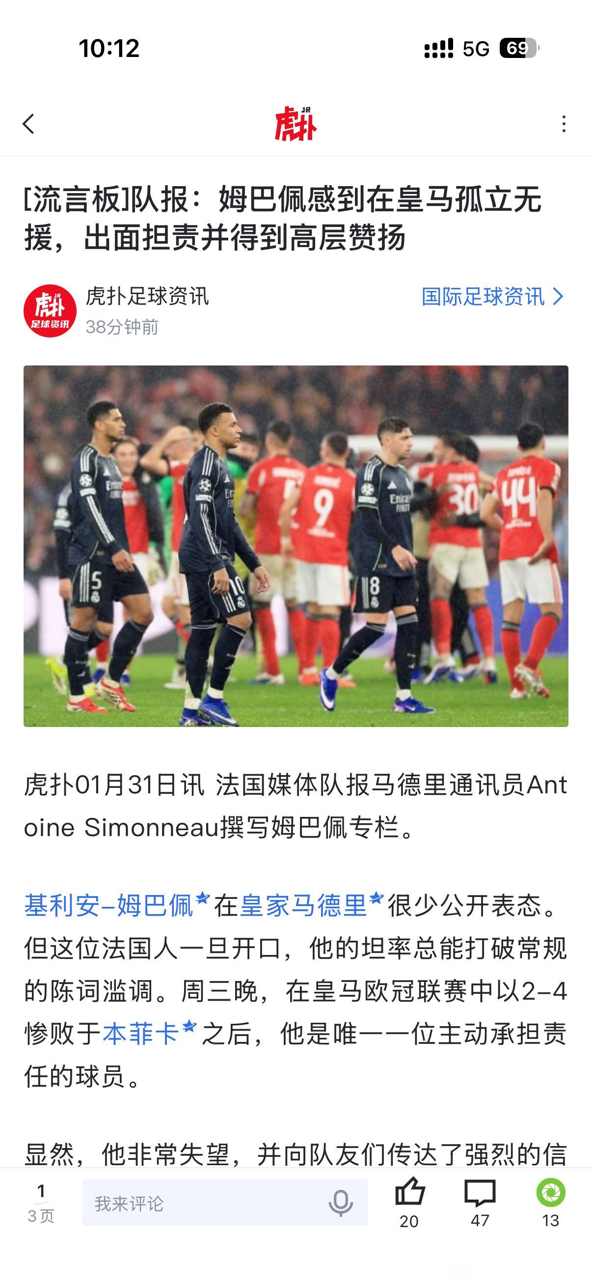 姆巴佩是不是进球太多了,他在皇马感到孤立无援? 这说明抢走所有风头,队友不满意呀。 以前威尼修斯赛季20+进球,连续拿欧冠。 姆巴佩40+进球,啥冠军都不没有,反而要成为球队焦点,不应该呀![可怜]
