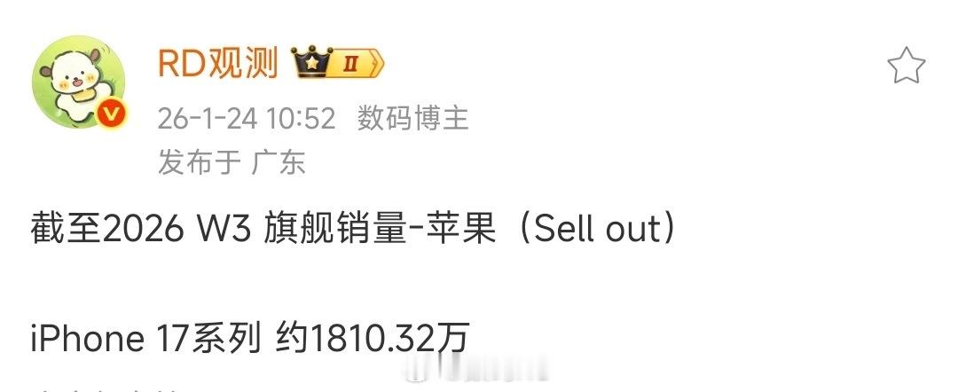 苹果17系列的销量来到了1891.13万,相对于上周,一周增长了80万台,是真稳