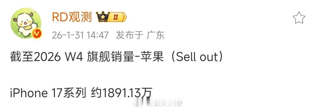苹果17系列的销量来到了1891.13万,相对于上周,一周增长了80万台,是真稳。