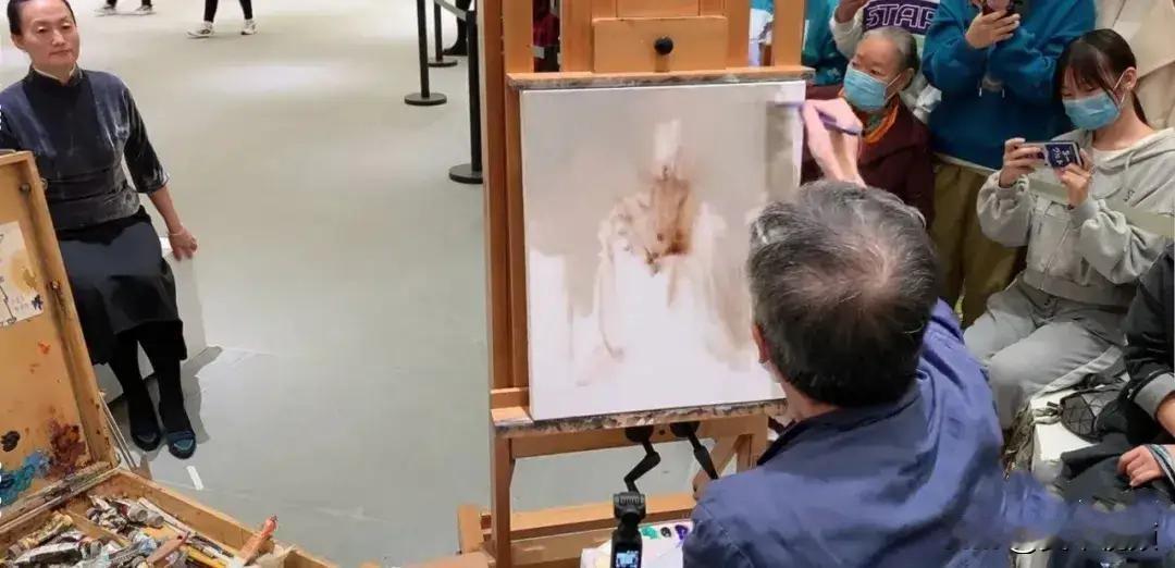 冷军画忻东旺的夫人半身像,4.5小时油画人物演示教学