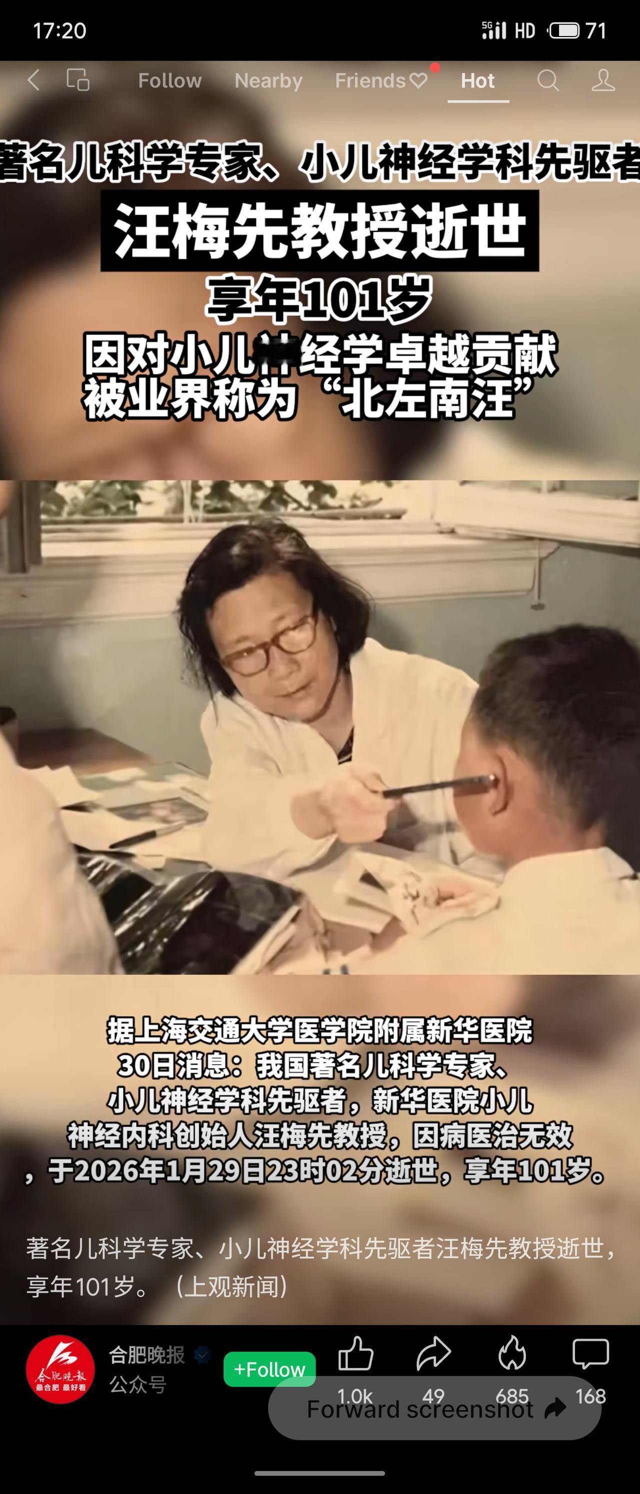 我国著名儿科医学专家、小儿神经学科先驱者汪梅先教授于2026年1月29日逝世,享年101岁。她与左启华教授并称“北左南汪”,创立新华医院小儿神经内科,为我国儿科医学发展与人才培养作出卓越贡献。