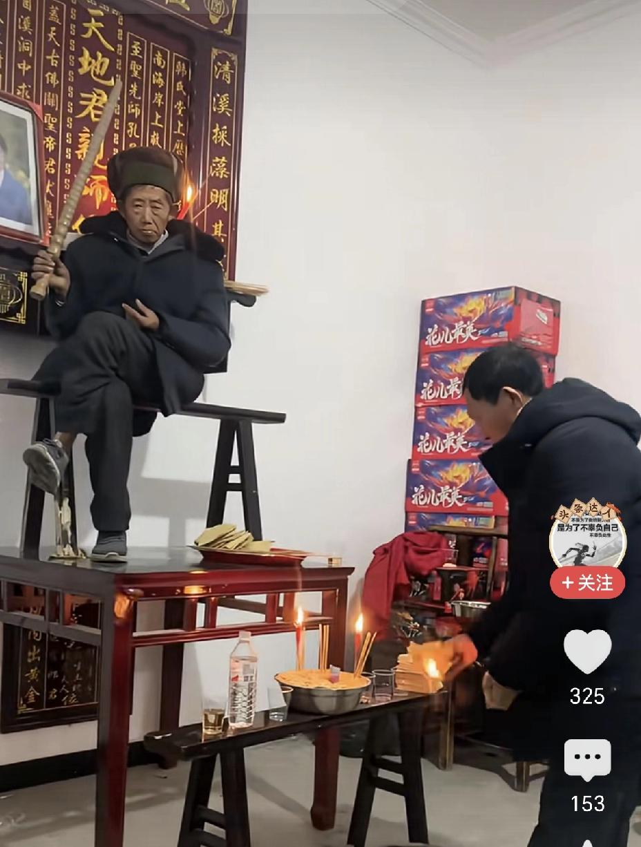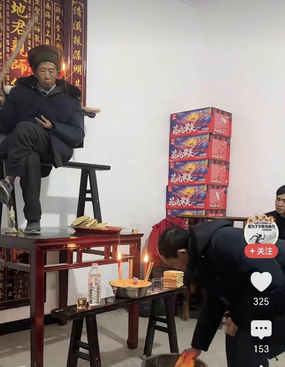 这是啥习俗? 活人手拿一金锏坐在桌子上,下面还有人在烧纸,旁边还坐着一群人。 这让我想到了,姜太公坐房梁,手拿一金锏说,“姜太公在此,诸神退位”烧纸风俗 烧纸钱习俗 烧纸习俗 楼道烧纸