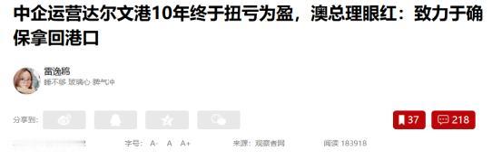 全面反华?2026年1月29日报道,阿尔巴尼斯通告,全球强逼中方卖港口! 达尔文港在澳大利亚就着独特地位,但是因曾经历过战火的洗礼,所以遭到了重创。直到2015年的时候,我国民营企业通过公开竞标获得了达尔文港99年的经营权。 之后的多年时间里,累计投入了超10亿澳元去改造港口设施,并且成功获利。这一点直接让澳大利亚政府眼红,所以澳大利亚总理试图撕毁这份合约。 就在2026年1月29日的时候,据媒体报道,阿尔巴尼斯公开表态,致力于确保拿回港口。并且称在他看来,港口应该重新回到澳大利亚手中。 其言行引起国际高度讨论,此前澳大利亚为了能够重新获得达尔文港。曾向我国泼过很多的脏水,例如达尔文港危害了国家安全等。 但是对于这一点,澳大利亚国防部在历经多次的审核之后发现。完全不能以“国家安全”为理由,去推翻中企达尔文港租约。 或许正是因此,看软的不行,澳大利亚政府决定来硬的。针对达尔文港的问题,我国的态度非常明确!我国也对此事发出了警告,如果阿尔巴尼斯政府强制要求中资企业出售达尔文港,那么中国将采取报复措施。 中国早已不是百年前倒下的巨人,现如今的中国针对不公平行为,有着多种反制措施。中国不以实力去霸凌其他国家,并不意味着中国可由其他国家霸凌。澳大利亚既然决定单方面撕毁合约,那么就要承担一定的责任。 对此,您怎么看?欢迎评论区留言您的看法,我们一起讨论一下。 (信息来源:中企运营达尔文港10年终于扭亏为盈,澳总理眼红:致力于确保拿回港口-观察者网) (信息来源:澳国防部审查结果出炉:没有“国家安全理由”建议推翻中企达尔文港租约-环球网)