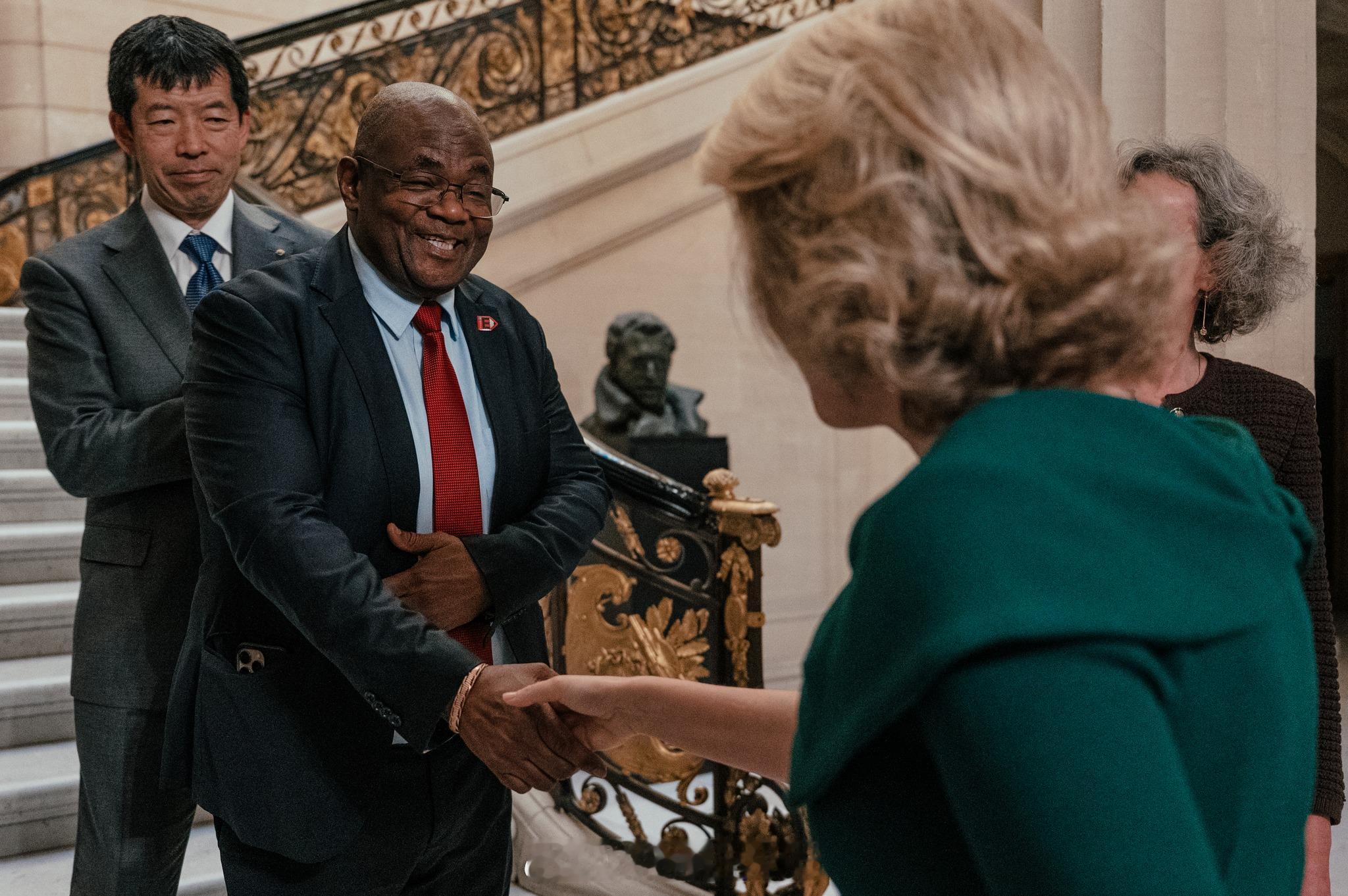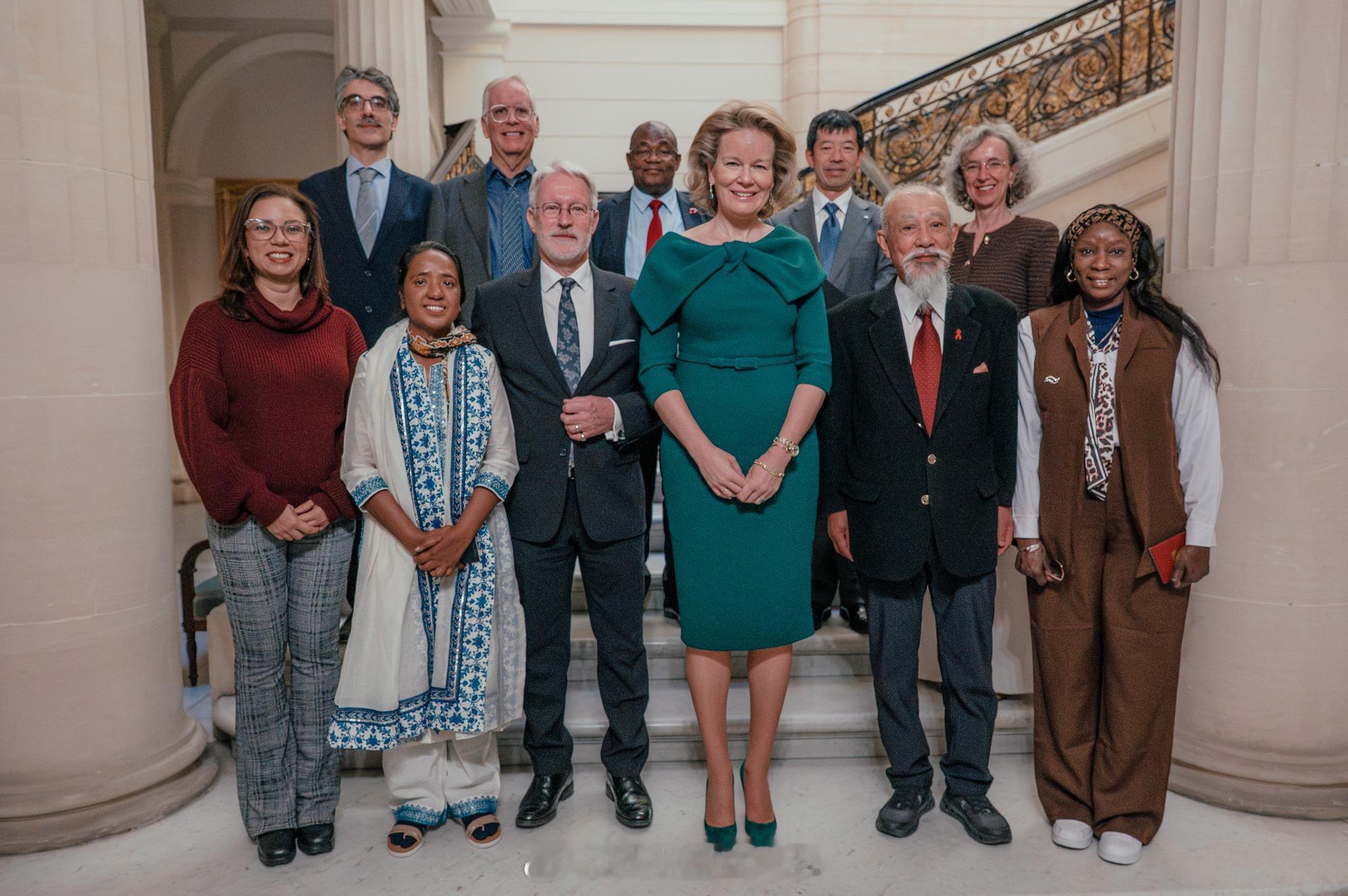1.30 比利时王后玛蒂尔德在王宫接待客人,裙子来自natan。他们新换的滤镜真的太黄了