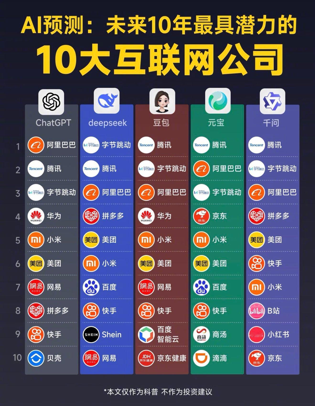 未来十年最具潜力的 互联网公司你看好哪个🥸