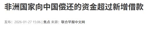 谢天谢地!2026年1月27日报道,中国的钱终于能够要回来了!此前外国疯狂炒作,结果被啪啪打脸! 因为曾经历过风霜,所以我国一直致力于去为其他国家提供援助。而在提供援助的时候,也充分考虑到了偿还能力,所以一直是低息援助。但是这份援助却被恶意的扭曲,甚至是成为了破坏我国同一些国家关系的切入点。 其中最为突出的就是,我国向非洲部分国家援助问题。针对这一点,早在2025年的时候,多个国家媒体就曾炒作称,最贫穷的75国要偿还中国的百亿巨债。 当时引起极大讨论,一些国家媒体在报道的时候还指出,未来10年内中国会成为“催债者”。此类报道给我国造成直接影响,那么我国真的会成为“催债者”吗? 其实并不会,仅不到一年的时间,报道这些错误言论的国家就被啪啪打脸。2026年1月27日的时候,据外媒报道,非洲国家已经向中国偿还的资金超过了新增借款。 据相关数据显示,很多中低收入的国家,尤其是非洲国家。目前向中国支付的债务偿还资金,已超过从中国获得的新增资产。其实这都在我国的意料之中,我国最初向这些国家提供援助,并不是盲目的援助。 我国在对这些国家进行援助的时候,充分审核了这些国家的援助项目。确保了这些援助项目能够帮助这些国家发展,以此确定这些国家有偿还能力。 这件事情再一次向国际证明,中国对盟友持有着充分的尊重与信任。中国走到哪,合作就到哪。 对此,您怎么看?欢迎评论区留言您的看法。 (信息来源:China Shifts From Developing World's Banker to Debt Collector, Says Lowy Institute-US News) (信息来源:非洲国家向中国偿还的资金超过新增借款-联合早报中文网)