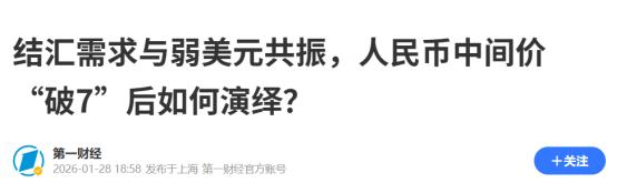西方陷入两难!2026年1月28日报道,人民币持续升值,美元陷入贬值周期!中国抓住机会,西方国家沉默了! 2026年仅开年一个月的时间,全球经济就出现了明显的动荡。就在最近这段时间,美元陷入了新一轮的贬值周期。而就在美元持续贬值的时候,人民币却在持续升值。 据媒体2026年1月28日的报道,根据中国人民银行授权中国外汇交易中心公布。人民币对美元汇率中间价报6.9775,较前一交易日大幅调升103个基点。 此事引起国际高度关注,当人民币持续增值的时候,美元却遭遇到了重大贬值。2025年美元指数全年下跌约9.5%,是近8年最大年度跌幅。 当美元持续贬值,人民币持续升值的时候,我国更抓住了这一时期。我国内外采取了多重措施,去继续打开人民币的升值空间。人民币持续升值对我国来说,有很大的利。比如说居民跨境消费升级,外债压力减轻等。 所以在这个情况下,西方国家沉默了。是选择跟随当下的经济局势,逐渐推行“去美元化”,吸收人民币,还是跟随美国?成为了当下很多西方国家,难以选择的题。 而在这个背景下,更多的国人关注的是后续走势。据专业人士分析,人民币汇率并非是急涨,而是呈现了一种非常稳健的升值状态。所以哪怕未来升值率出现放缓的情况,但人民币仍旧会持续升值,处于一个偏强运行的状态。 对此,您怎么看?欢迎评论区留言您的看法,我们一起讨论一下。 (信息来源:结汇需求与弱美元共振,人民币中间价“破7”后如何演绎?-第一财经)