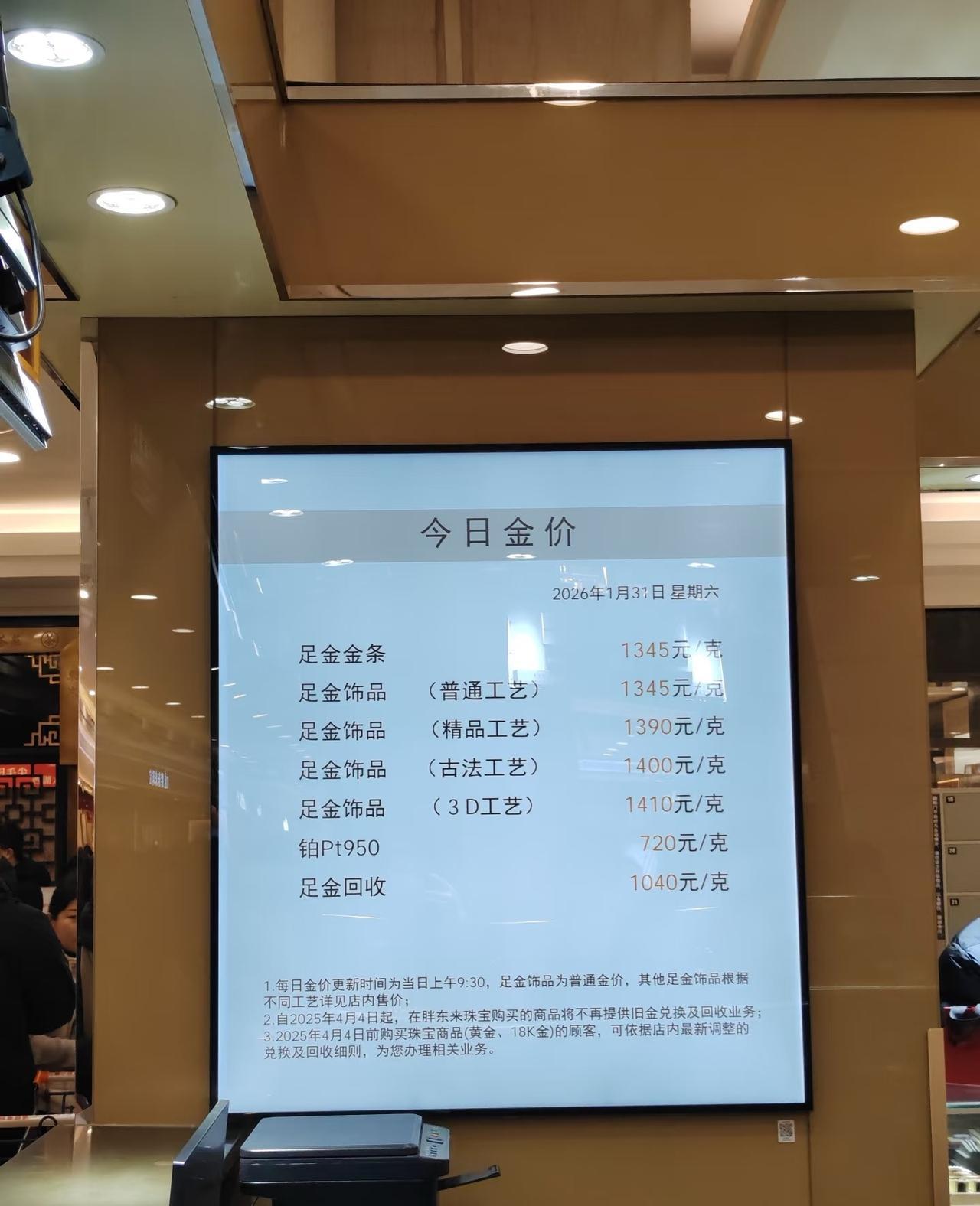 胖东来黄金降100 1月的最后一天,黄金在经历了连续两晚的瀑布后,金条价格已经回到一周前的水平了。 胖东来的的黄金柜台依旧火爆。 其实在胖东来买金,首饰金比外边更合适,基本便宜200左右。金条比银行贵了200,投资的话选择银行更合适,不过胖东来的金条是自己设计的,从收藏角度看,也是有一定价值的。 这个周末给连续跳水的金价留了一口喘息的机会,但是也给了华尔街的大数据计算的时间。周一开盘,到底是回升还是继续下降?