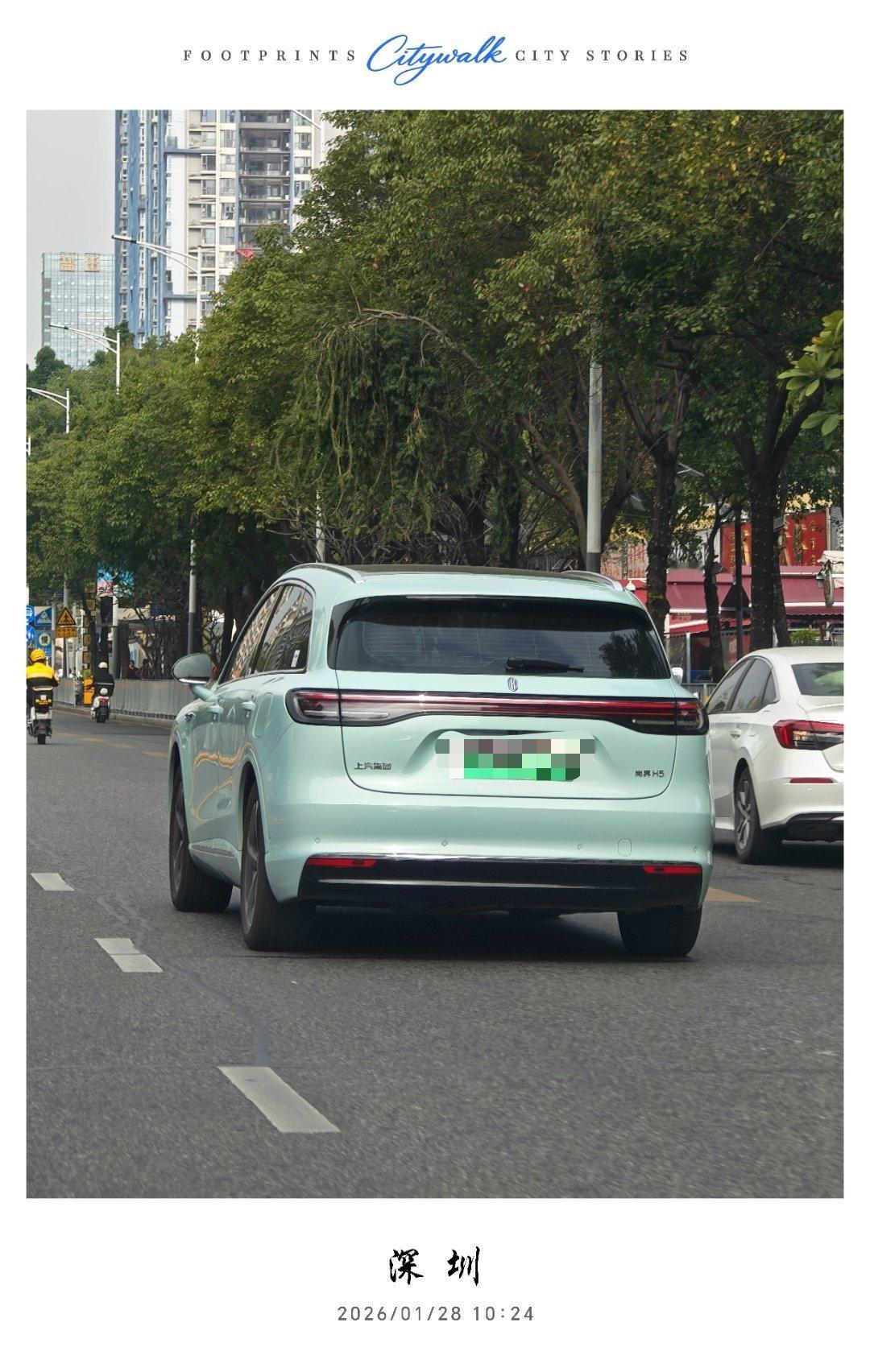在路上偶遇一台尚界H5,雅川青这个颜色是真好看,果然实车颜值还得线下验!建议颜控