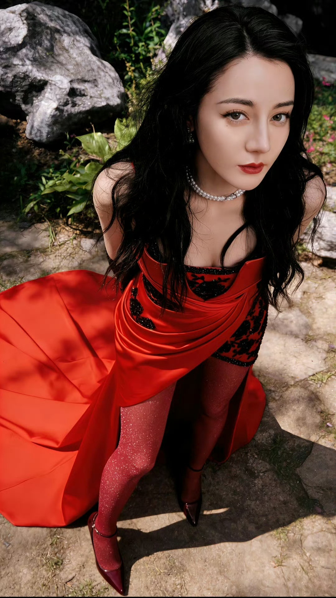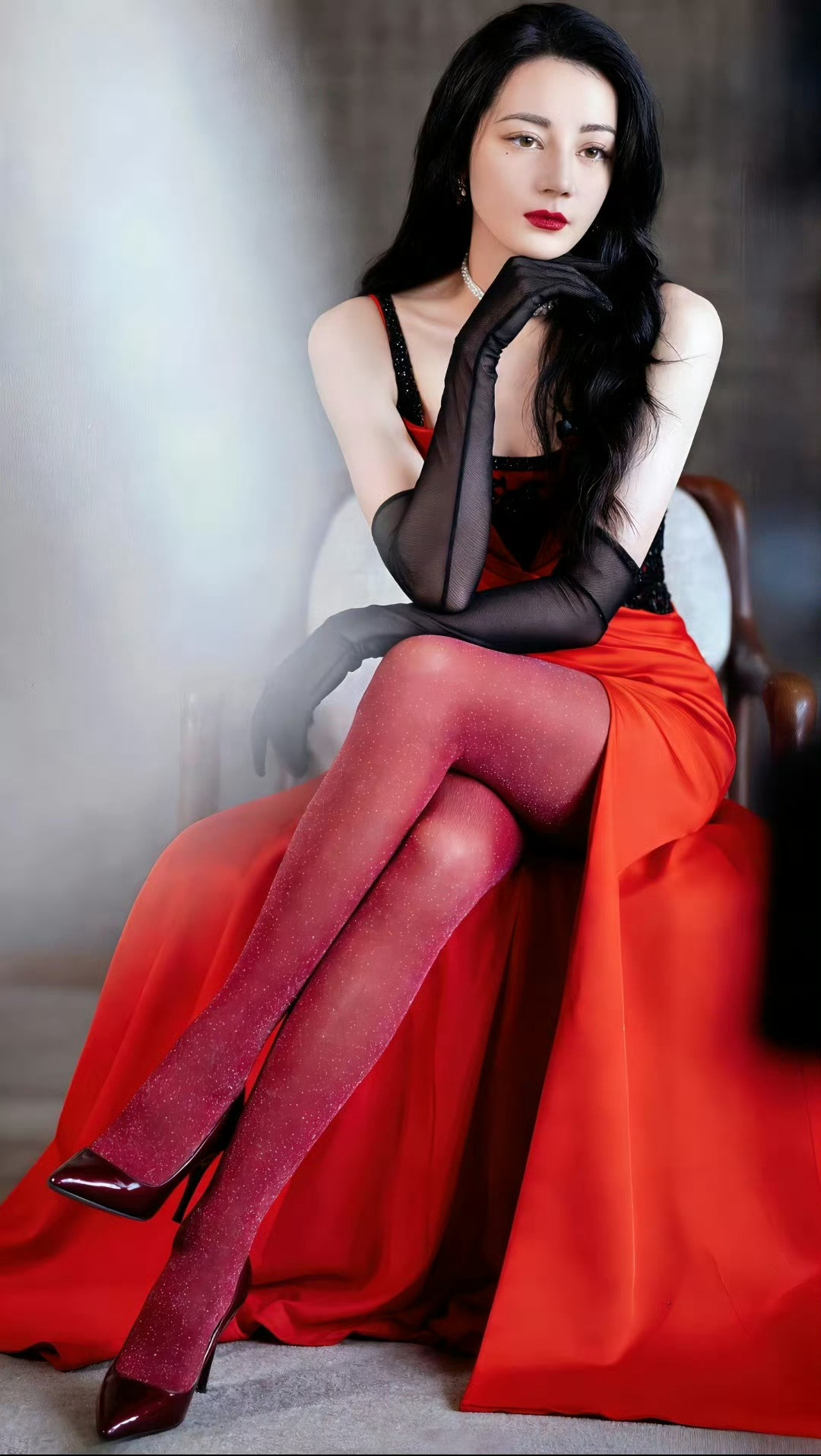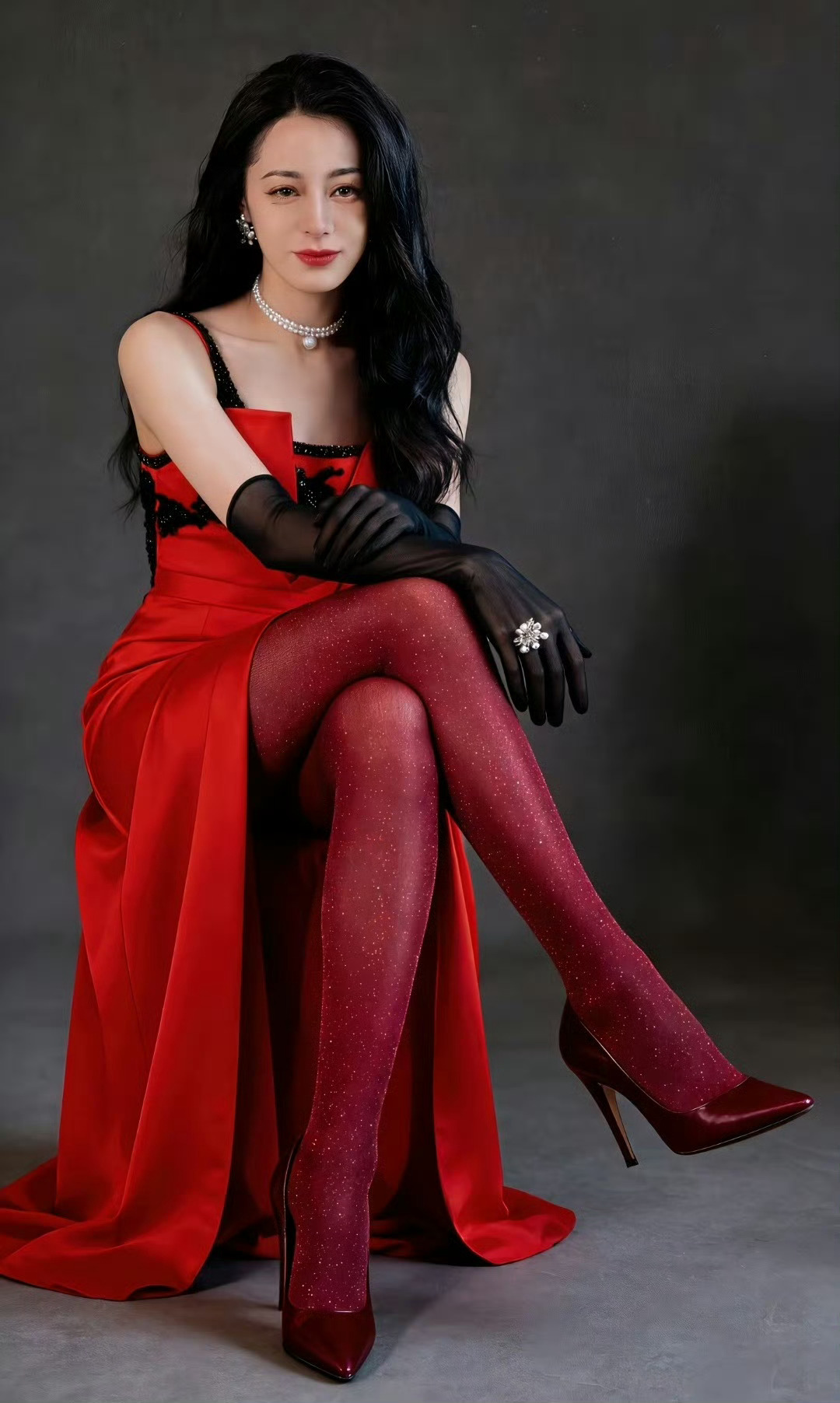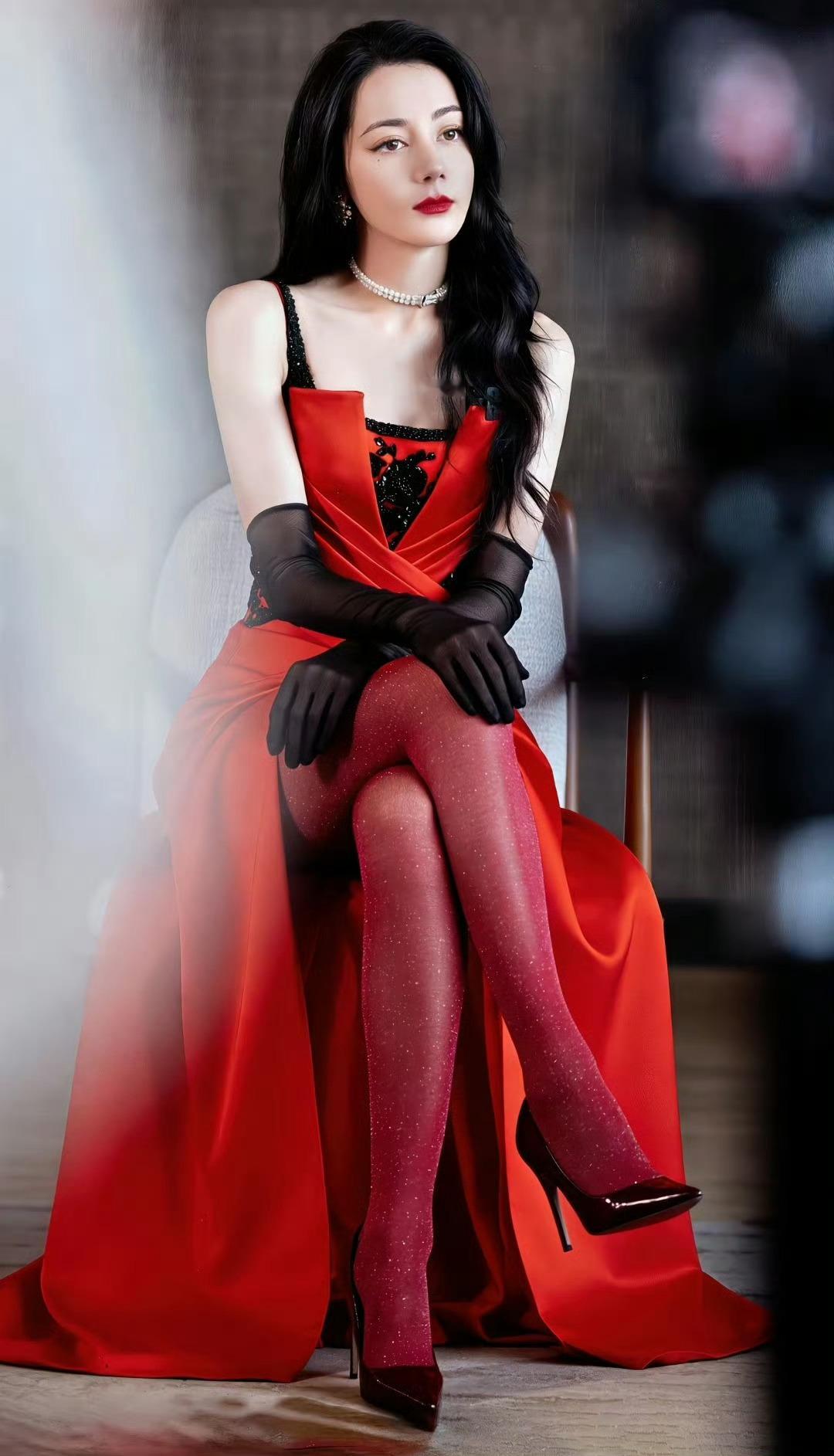 迪丽热巴红色丝袜