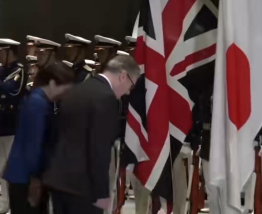 英国首相斯塔默抵达日本后,感觉老实的他被高市早苗坑了,在迎宾环节上,高市早苗引导斯塔默走向日本国旗所在的地方,然后用手示意斯塔默对日本国旗进行行礼…斯塔默直接就弯腰行礼。。。与特朗普之前访日时,面对高市早苗指引去对日本国旗行礼时,特朗普直接选择无视,走过去,形成鲜明对比。 从这点上,确实懂w还是更懂啊!
