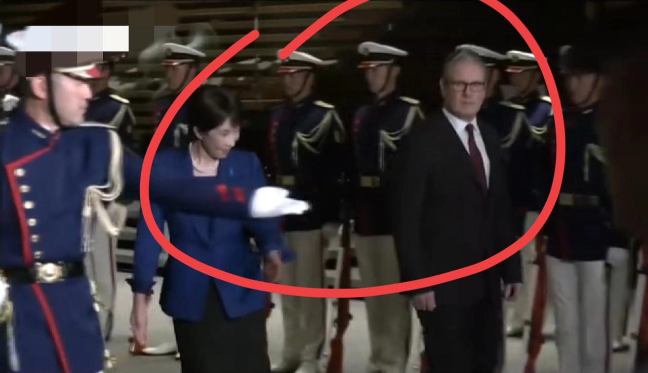 哈哈,斯塔默到日本,又不会走道了!检阅日本仪仗队,全程跟着高市早苗的指示走!看斯塔默这不知所措的紧张表情,短短一小圈,走得那叫一个手足无措! 进门往哪走,一会该走左边还是右边,斯塔默啥也不知道,看见高市早苗习惯对着两国国旗鞠躬,斯塔默也跟着鞠躬!斯塔默虽然不懂礼仪,可是不傻,心里想的是,入乡随俗总没错! 玩笑归玩笑,问题出在哪里,是英方礼仪工作人员太失职了,没提前对接好,告知斯塔默,还是斯塔默不喜欢繁文缛节?这么严肃场合,斯塔默很失礼仪!