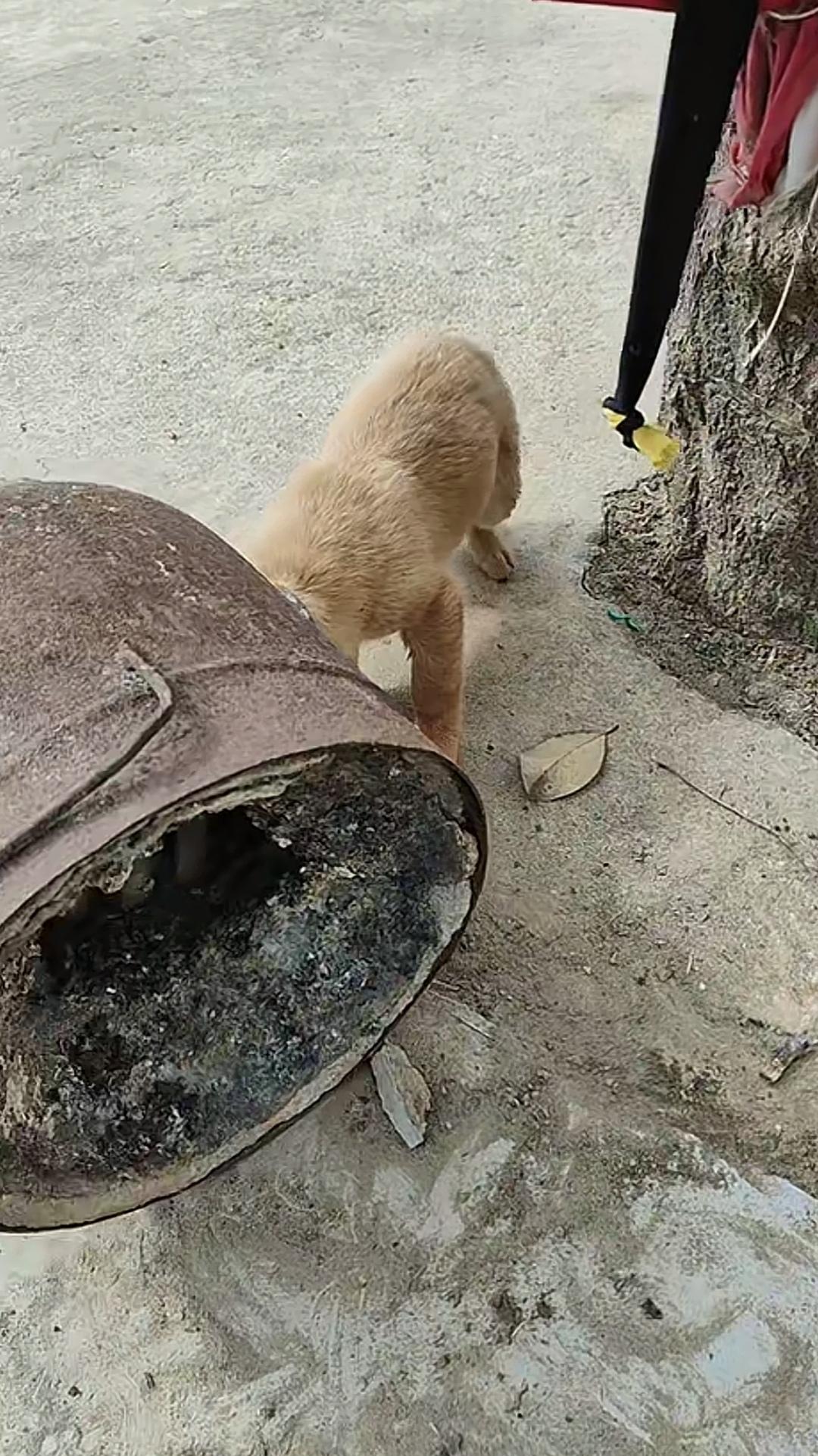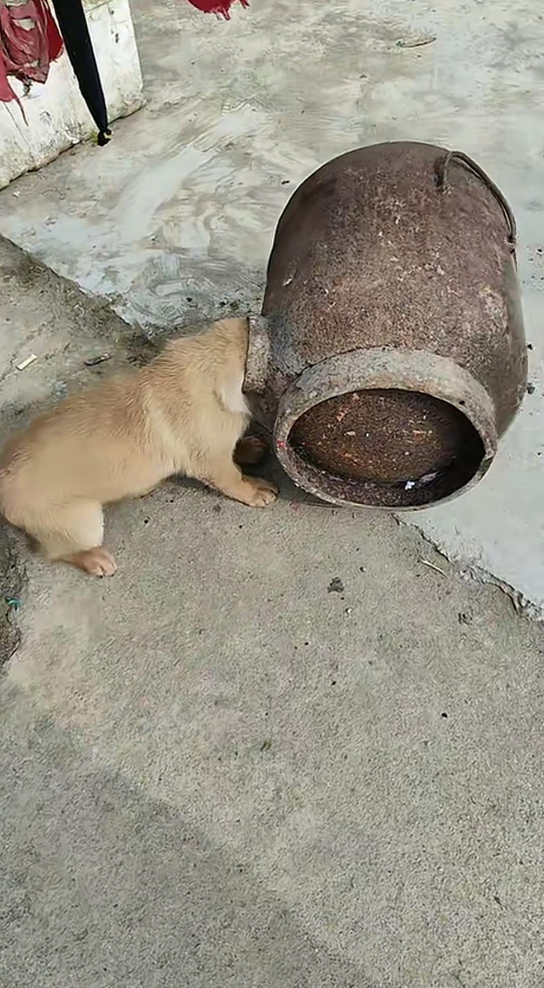 这条狗觅食的本领着实不小,这次居然把头伸进了架锅的柴材口。它在里面折腾了许久,脑袋却怎么也拔不出来。主人听到动静赶来,急得六神无主,这可怎么办才好啊? 从画面中能够看出,狗都被折腾得疲惫不堪了,这位狗主人却不想办法,只一味地拍视频,是不是有些残忍呢?