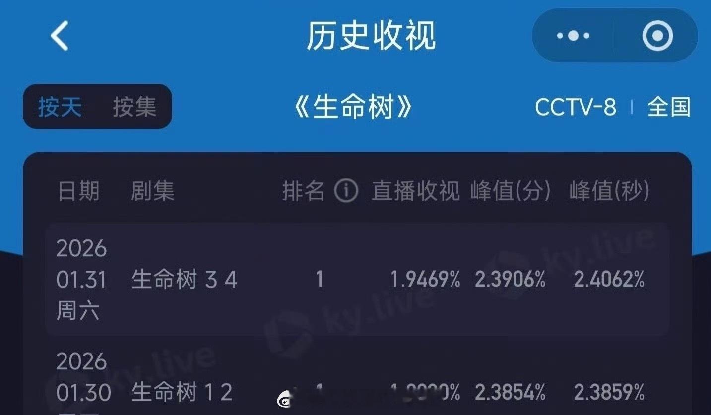 《生命树》次日酷云收视率1.9469,这个成绩咋样