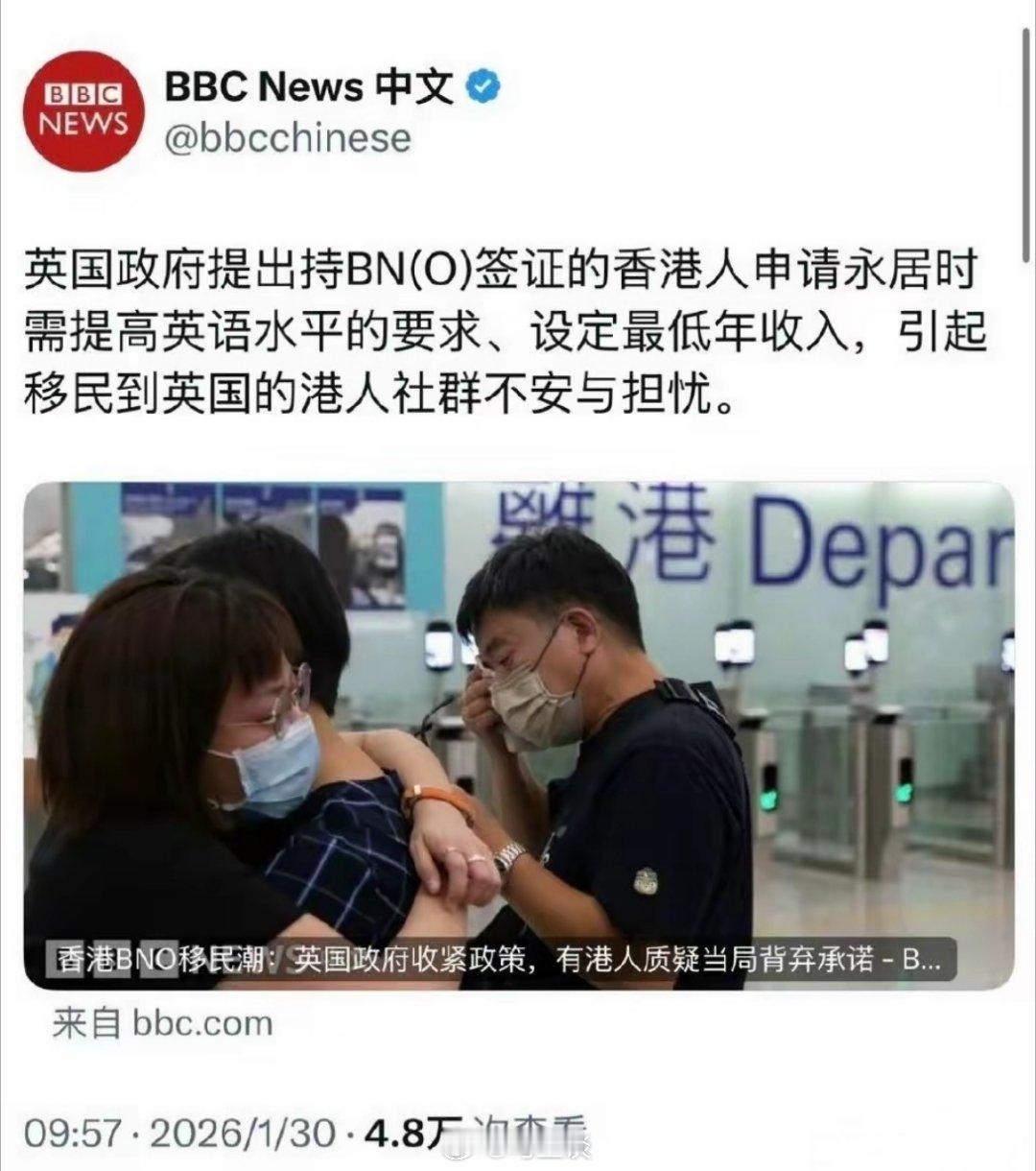 英国政府对持BNO签证的香港人申请永居时提高英语水平要求、设定最低年收入,被质疑是背弃当初承诺。唯一的要求:别回来。