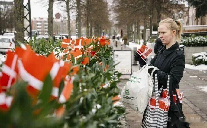 1月26日,据丹麦TV2报道,花坛里共有44面国旗,代表44名阵亡士兵,但美方安保人员却跟清理垃圾一样把这些国旗扔掉。丹麦人摆放这些小国旗,是在表达对美国人忘恩负义行为的怒火--我们跟着美国出兵到阿富汗,死亡比例为北约最高(丹麦总共约600万人口),而美国竟然要侵占丹麦领土。这44面小国旗对美国大使馆的工作根本没有任何影响。丹麦法律也并不禁止放置此类物品,除非是政治性的标语、横幅、旗帜。丹麦国旗摆在哥本哈根大街上没有任何问题。