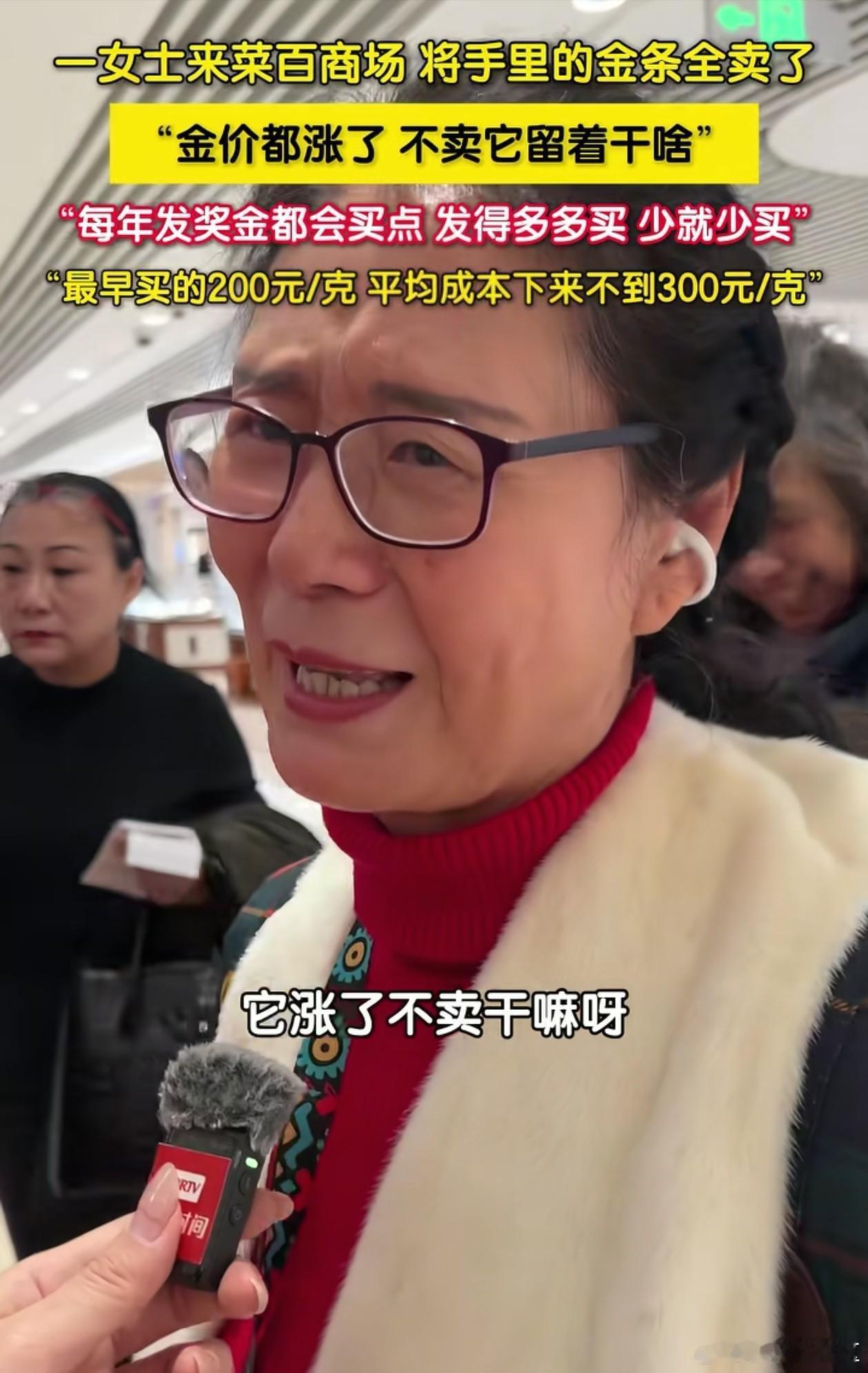 人间清醒!北京一阿姨看金价上涨,把十几年来买的金条全都卖了,有人问她怎么不留几根,阿姨直接回了一句:“它涨了不卖留着干啥?”