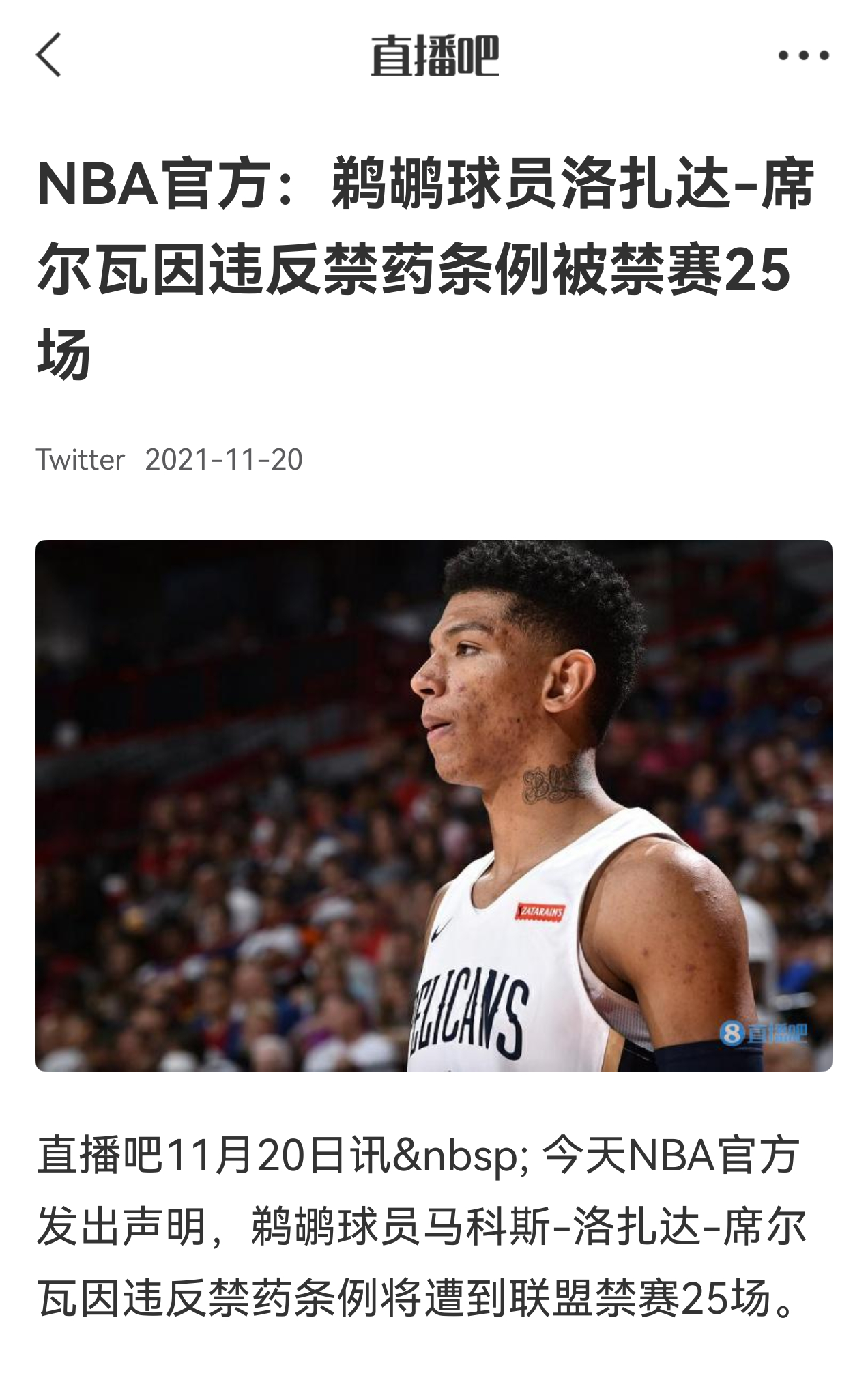 好像nba已经好久没有处理过禁药行为了,查了一下,最近一次还是在2021年。搞得我都以为这个规定没用了呢新赛季篮不住 保罗乔治