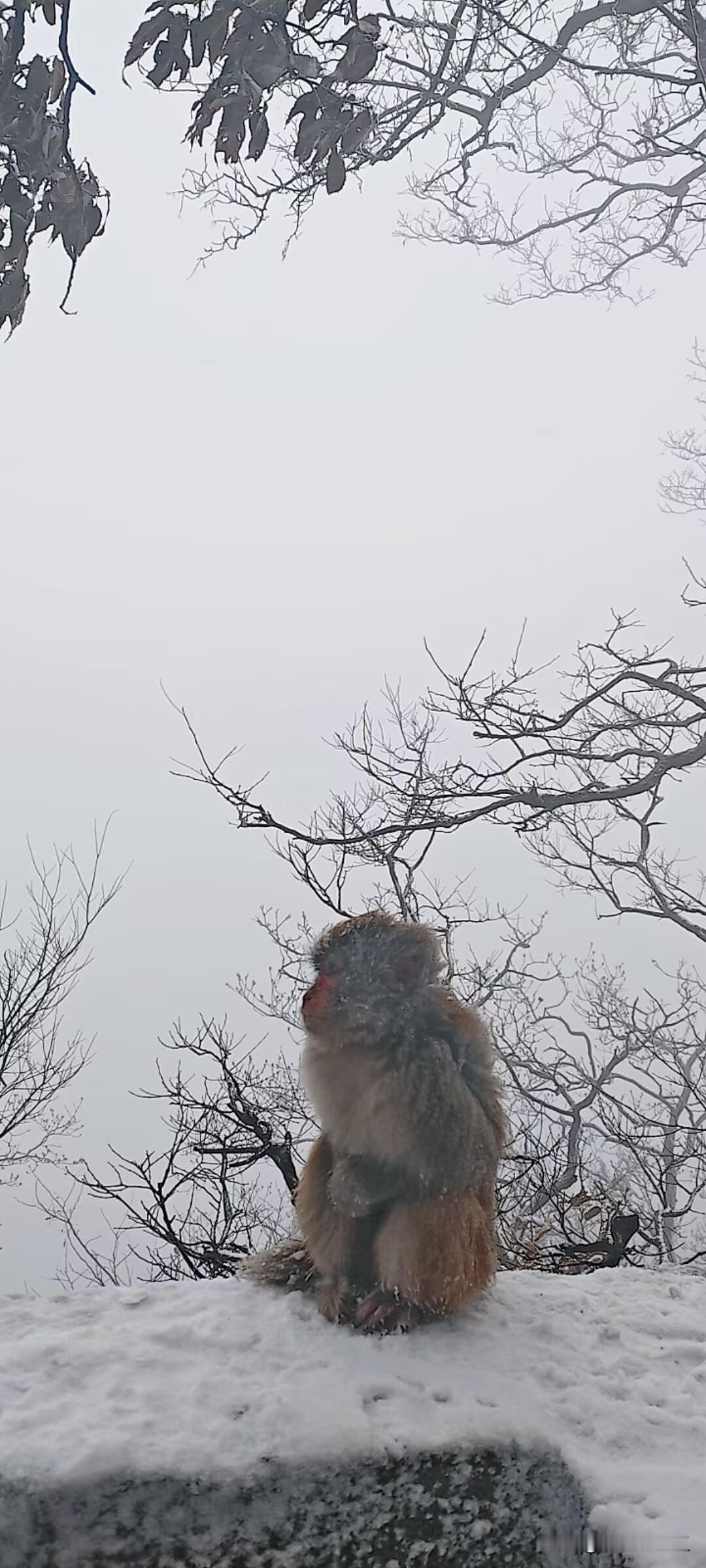 这冬天金丝猴也有点受不了了!冬日生活打卡季 完美金丝猴 陕西野生金丝猴