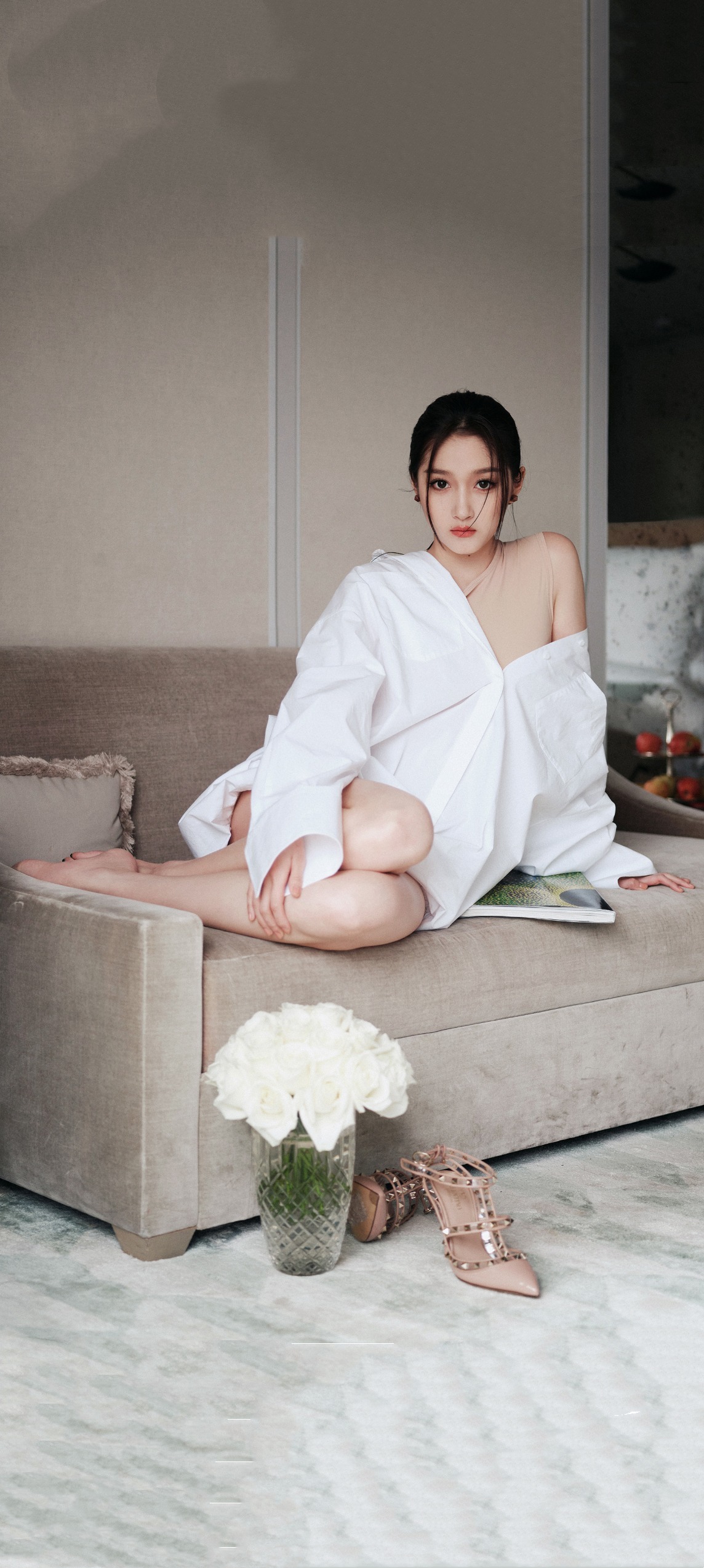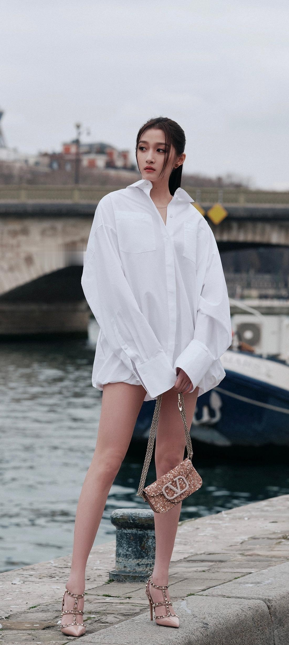关晓彤瘦了十几斤,关晓彤白衣穿搭写真,身材比例好绝。关晓彤