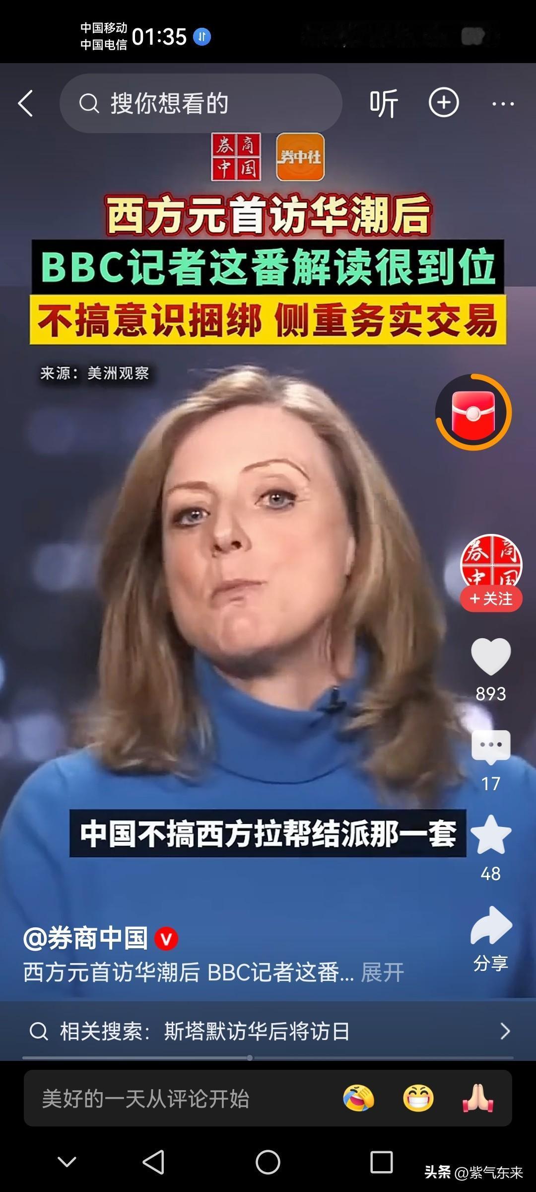 BBC最了解中国,对中国的报道相对来说比较客观! 针对近期多国访问中国,洽谈对华贸易,取得丰硕成果。 BBC记者对此进行了一番解读,并且解读的很透彻! BBC记者说:中国不搞拉帮结派,中国也不摆架子,中国就在那里欢迎世界各国来洽谈贸易,跟中国做生意就是单纯的做生意,很务实! 这位BBC的记者说的很对,中国向来讲究平等和相互尊重,彼此互惠互利,做生意就是做生意不参与政治! 这也是西方非常欣赏的地方!这也间接讽刺了特朗普的霸权主义! 反观特朗普最讨厌BBC,甚至公开指责BBC报道不实,两者也是不对付!BBC