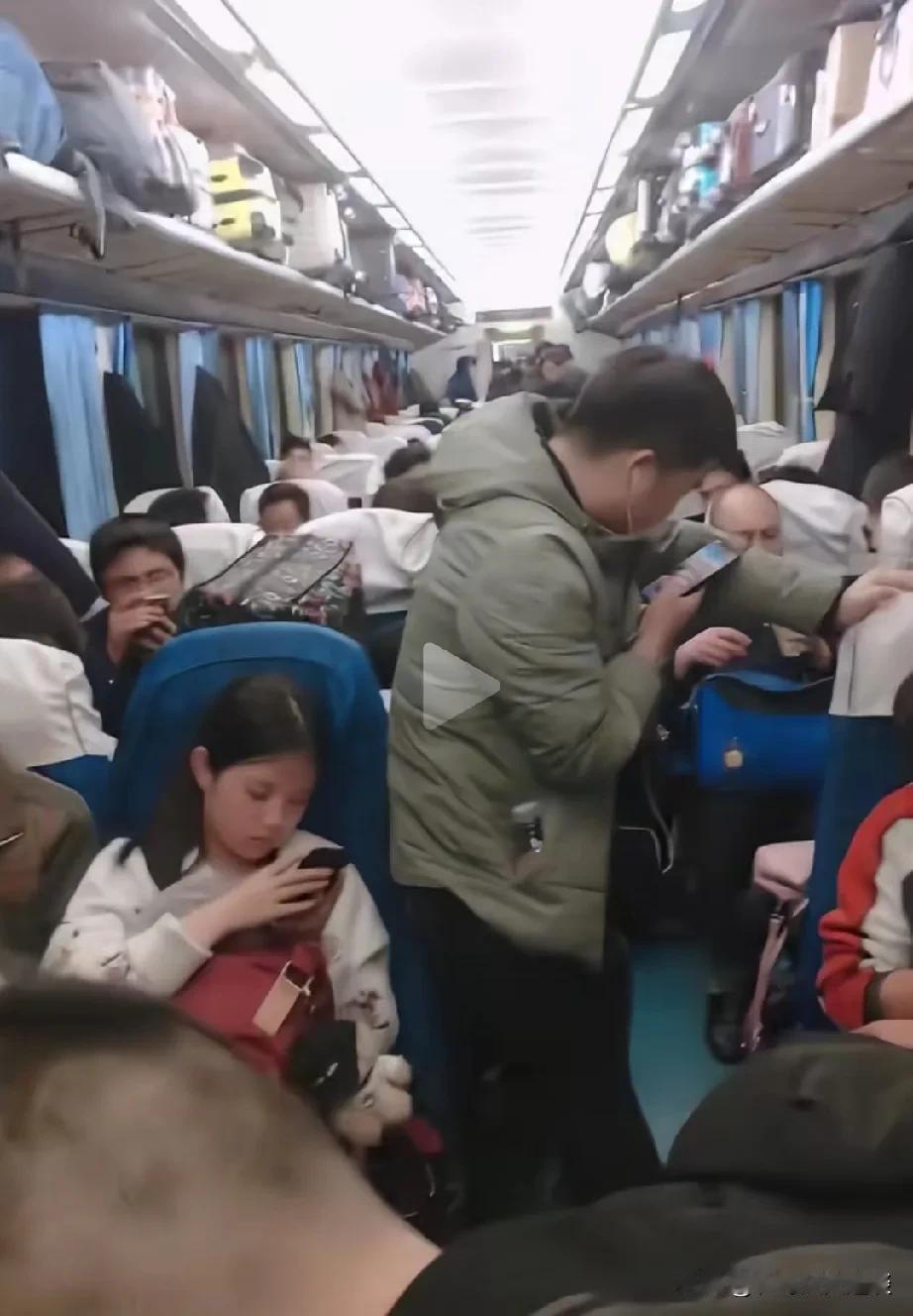 看看这绿皮火车挤的不成样子。这一年一度的,过年马上要开始了,老乡们开始返程了,他们宁愿做十几个小时熬夜拥挤的绿皮火车,也不愿意去坐宽敞明亮的,舒适的高铁。这是为什么?我就很纳闷啊。 之前吧是买不到票,火车慢,都想回家过年,买票困难,你说现在交通发达了,网上手机买票,高铁跑得那么快。他们为什么不去坐高铁,还要坐这些拥挤的绿皮火车?回到家里得需要十几个小时。