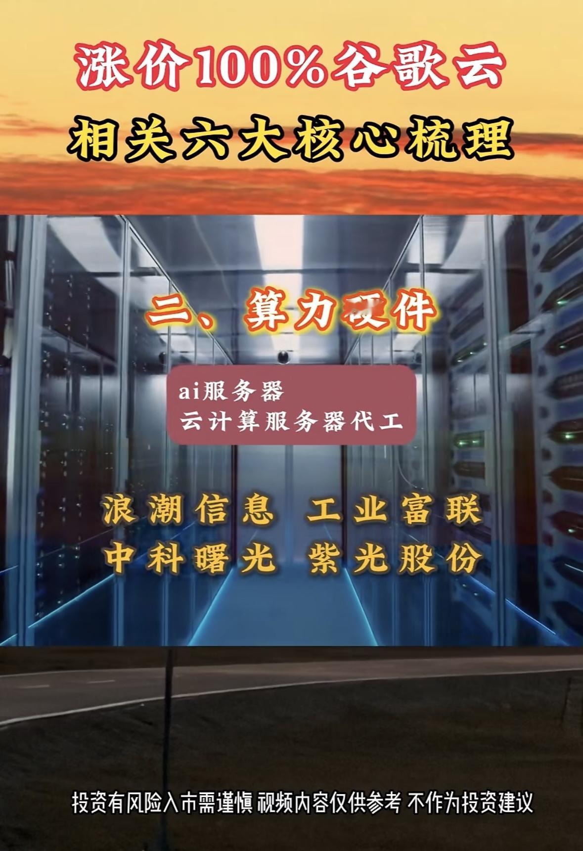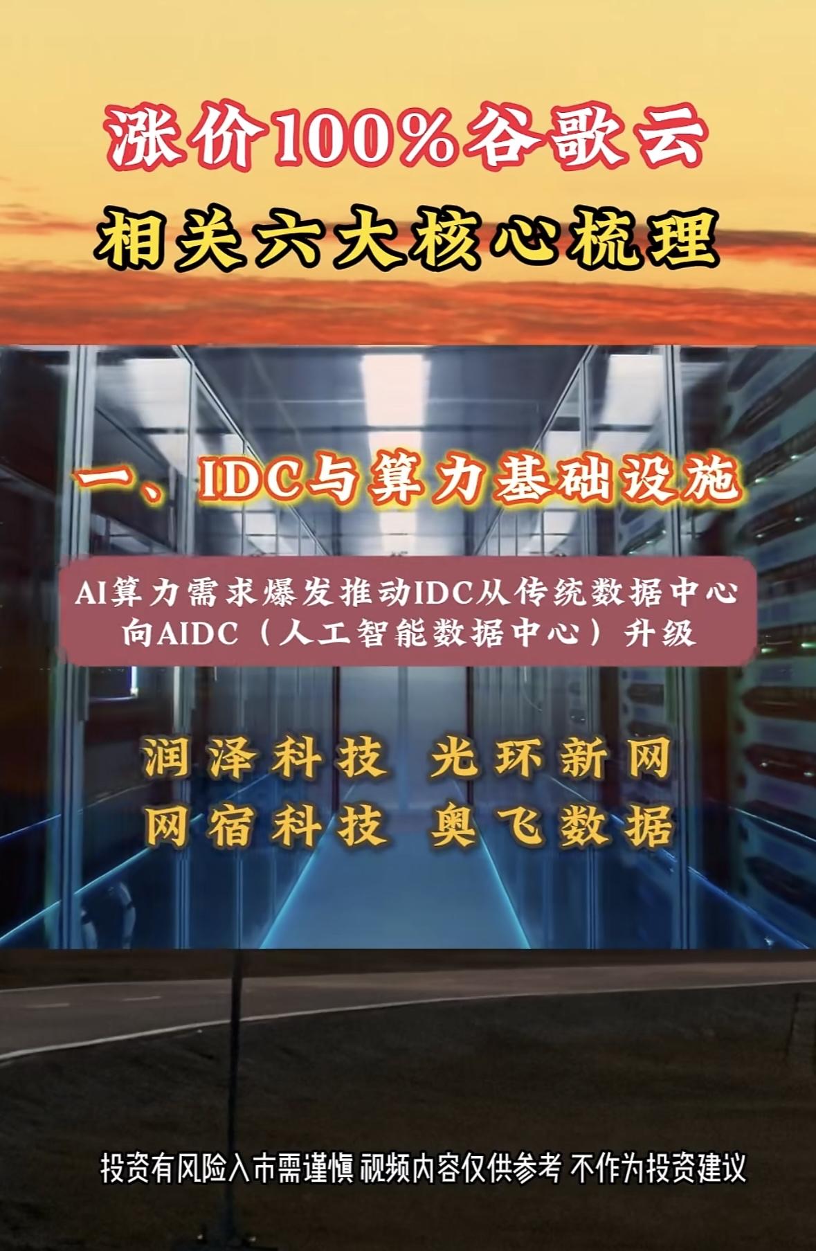 谷歌云股价飙升100%,相关六大核心梳理 AI算力需求激增推动数据中心升级,关注相关科技企业机会。投资需谨慎,市场有风险。