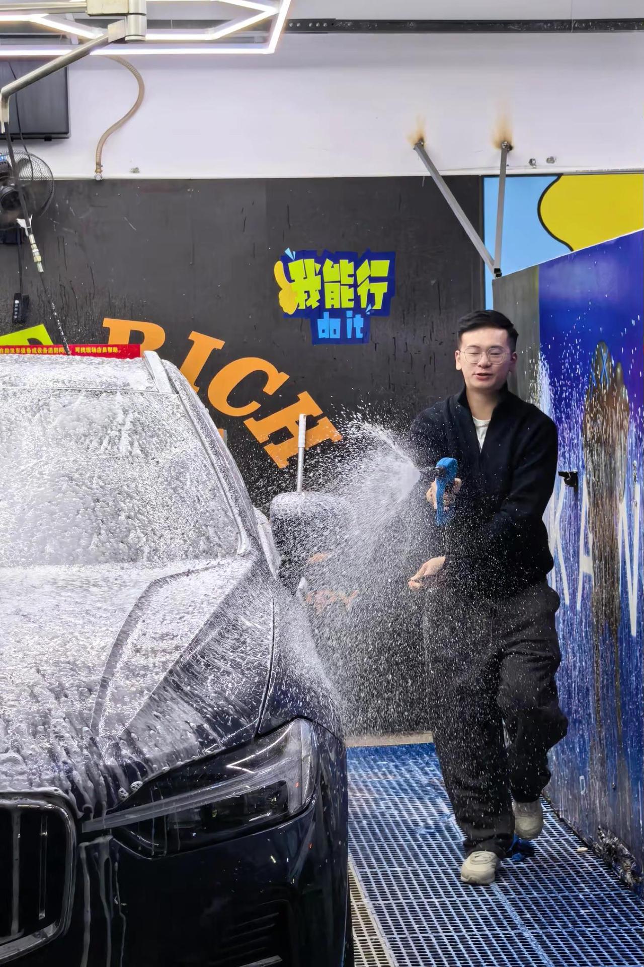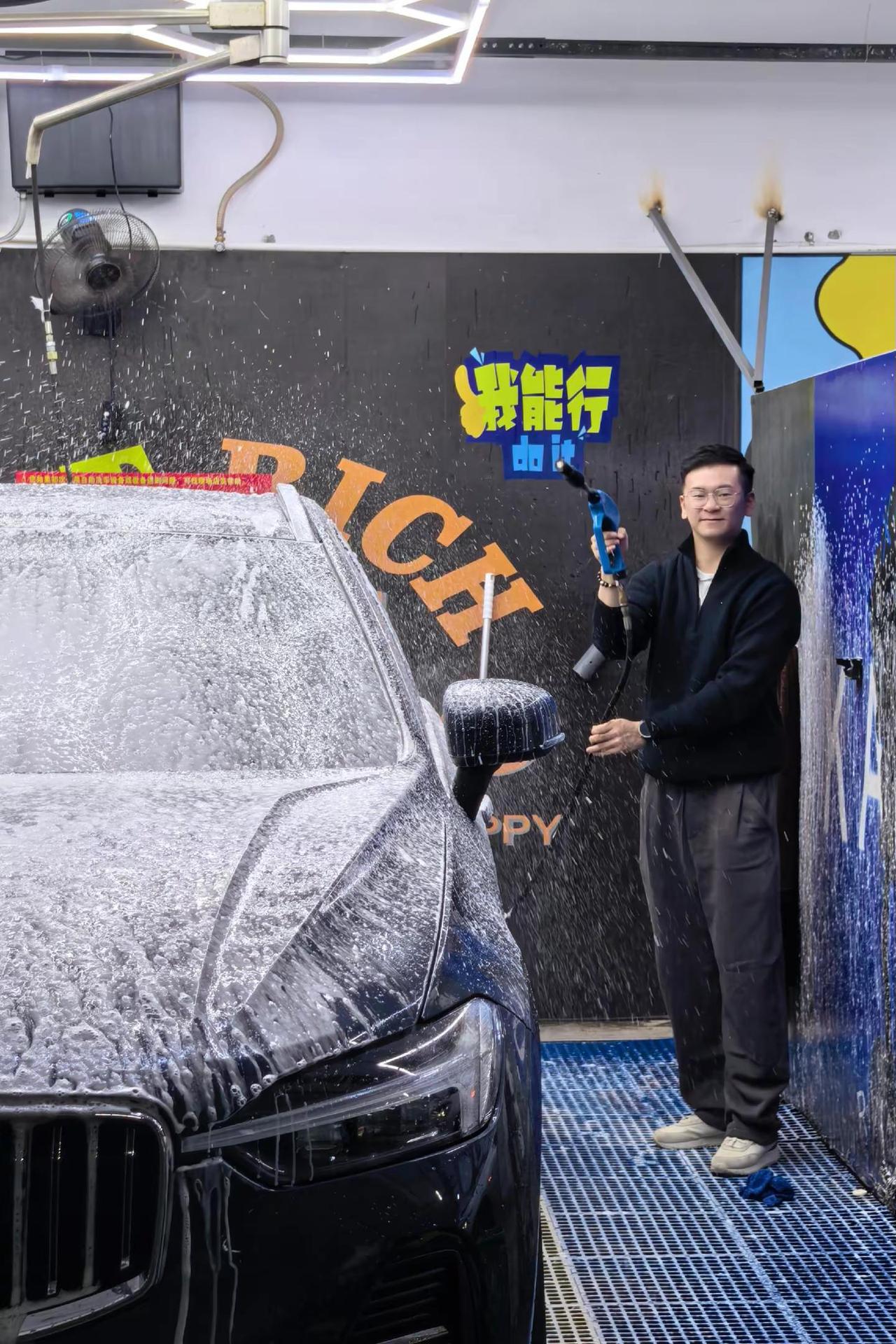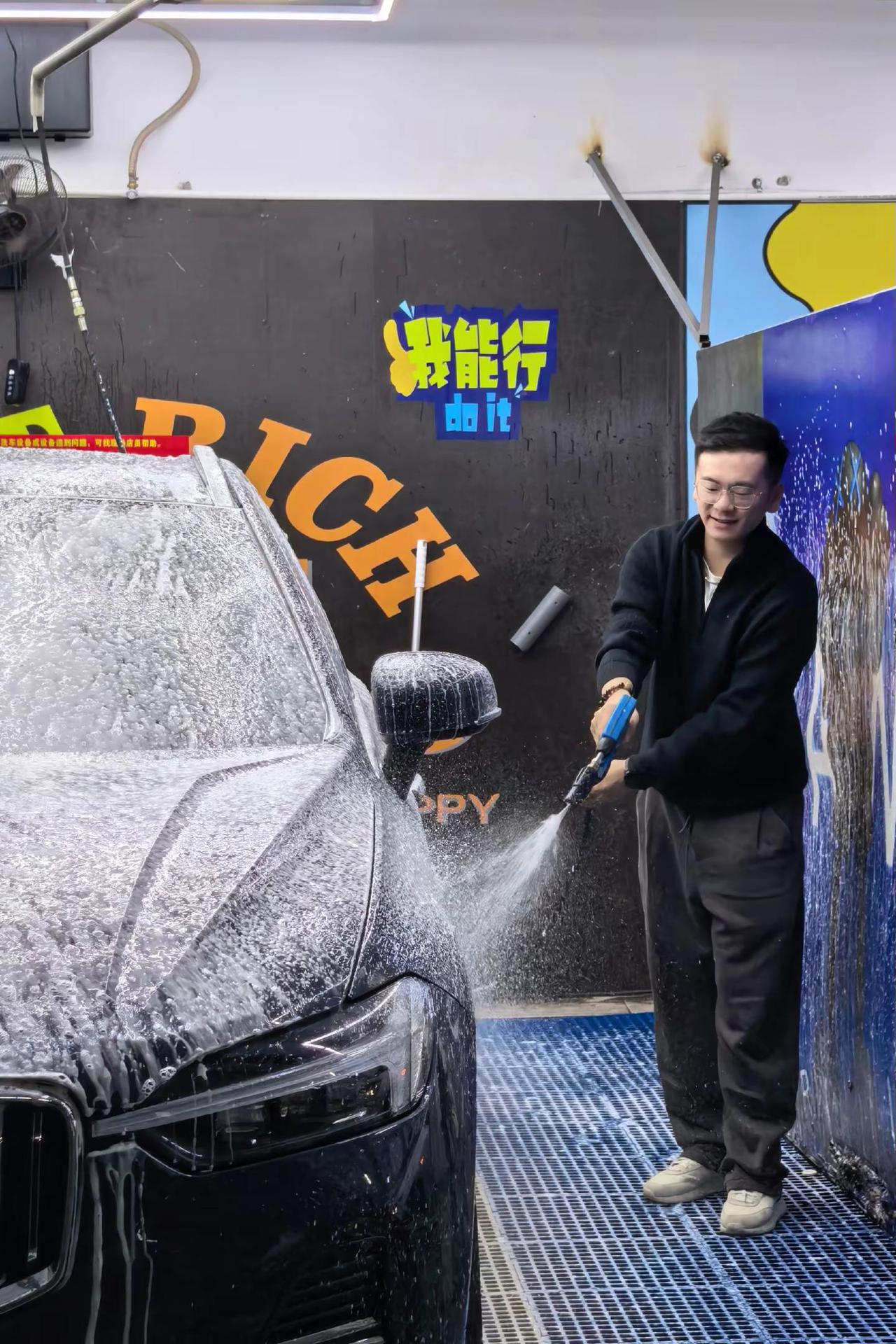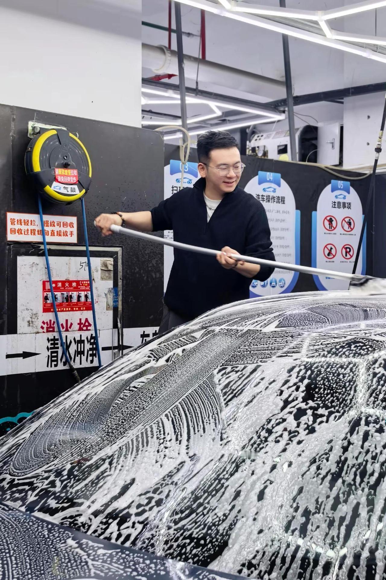 周末给小牛仔洗洗干净忙忙碌碌了一个月难得的放松时间一张照片说明你的专业洗车