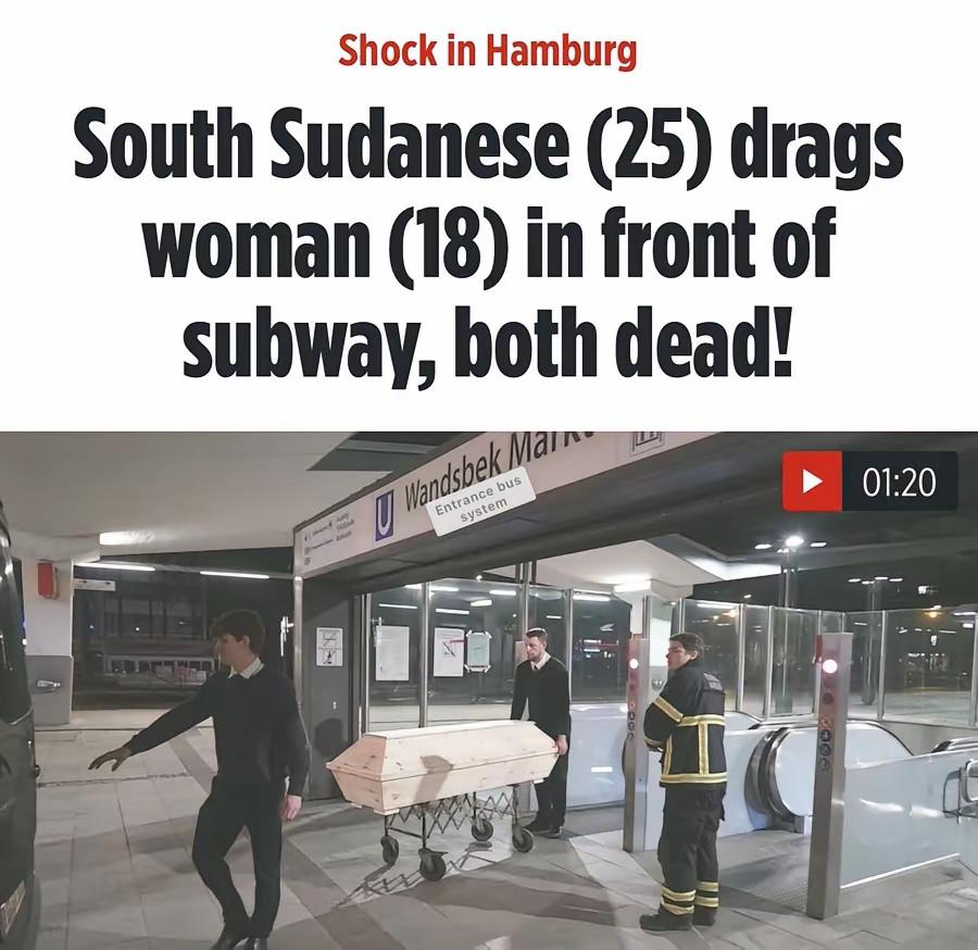1月31号德国汉堡市一地铁站发生了一起惨案,一个苏丹黑人难民随机抱起一名18岁德国女孩,跳向驶来的地铁,两个人不幸死亡,这样的行为不知道是苏丹难民对德国的不满还是自己想自杀随机拉上一个垫背的,总之这个女孩太倒霉了,无幸死亡。