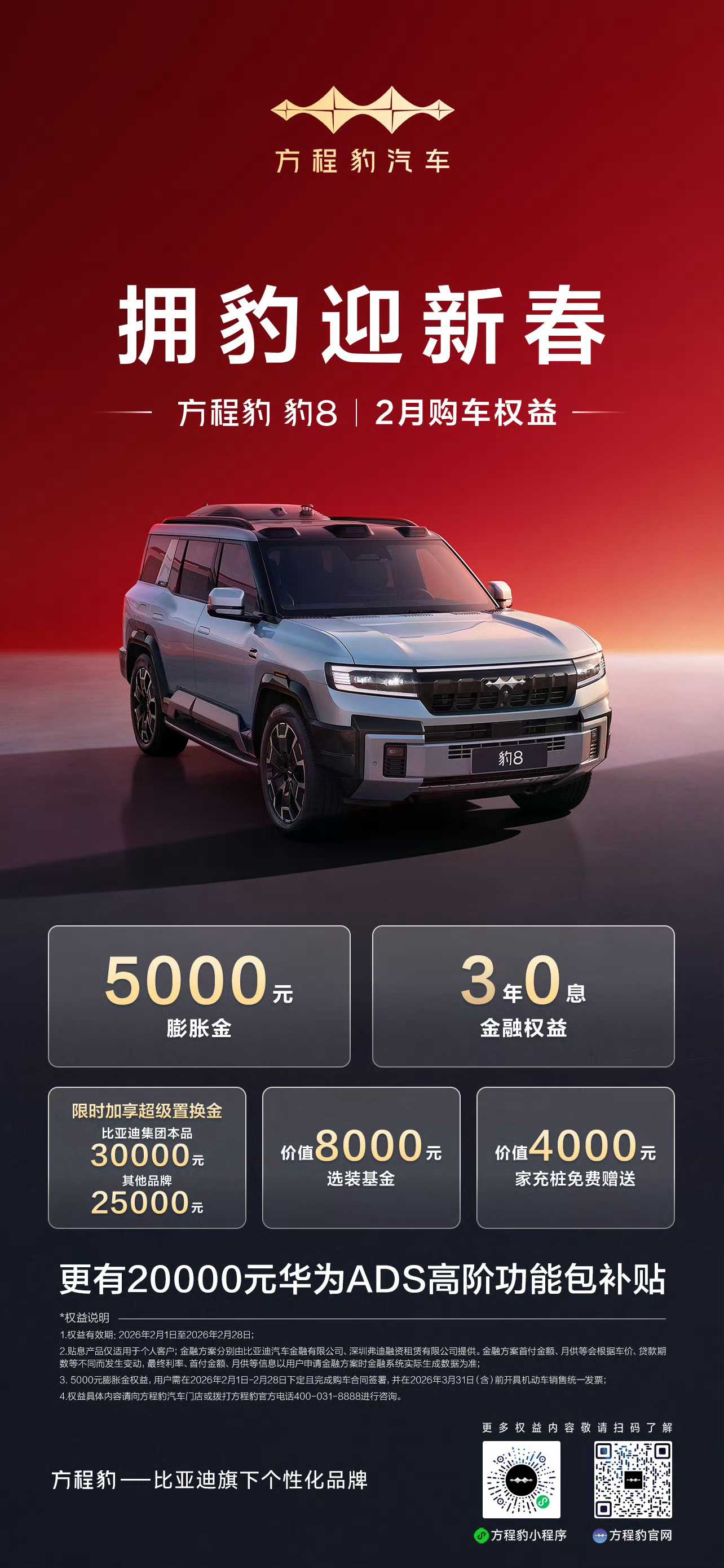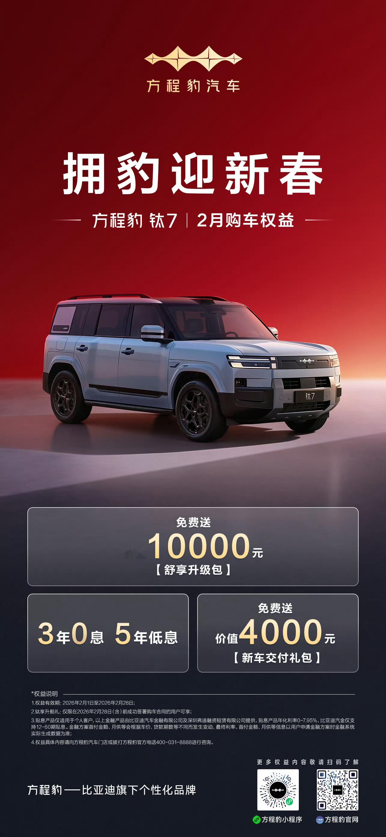 方程豹2月购车权益来了,全系支持3年免利息,钛7支持5年低利息,其他的全系也很香,怎么感觉2月才是最佳购车期
