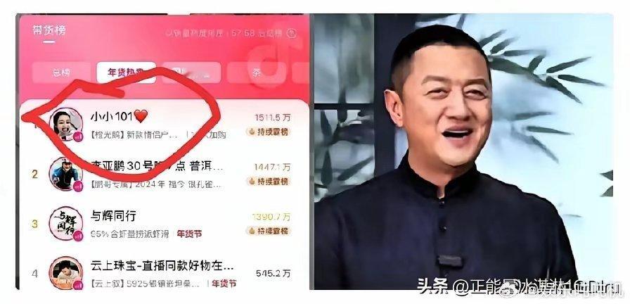 董宇辉直播榜第三,可以理解李亚鹏第二,也能理解我唯独不理解的是,第一居是个听都没听过的叫“小小101”。昨晚刷到直播榜单,我直接看懵了,越琢磨越费解!你敢信?董宇辉满腹诗书、张口就是干货,居然只排第三;李亚鹏更拼,一把年纪从天黑播到天亮,饭都顾不上吃,光茶叶就卖了一个亿,妥妥顶流战绩,结果才屈居第二。压过这两位大神的,竟是叫小小101的博主!我特意去扒了下,她原名徐凡,早年和老爸拍跳舞视频,靠保安老吴出圈,直播就唠唠家常、分享日常,没稀罕货没硬干货,居然稳坐榜一。拼命的干不过卖萌的,讲文化的比不过唠日常的,现在网友的喜好真猜不透。直播圈哪有固定套路,能戳中网友心坎的,就是王道!