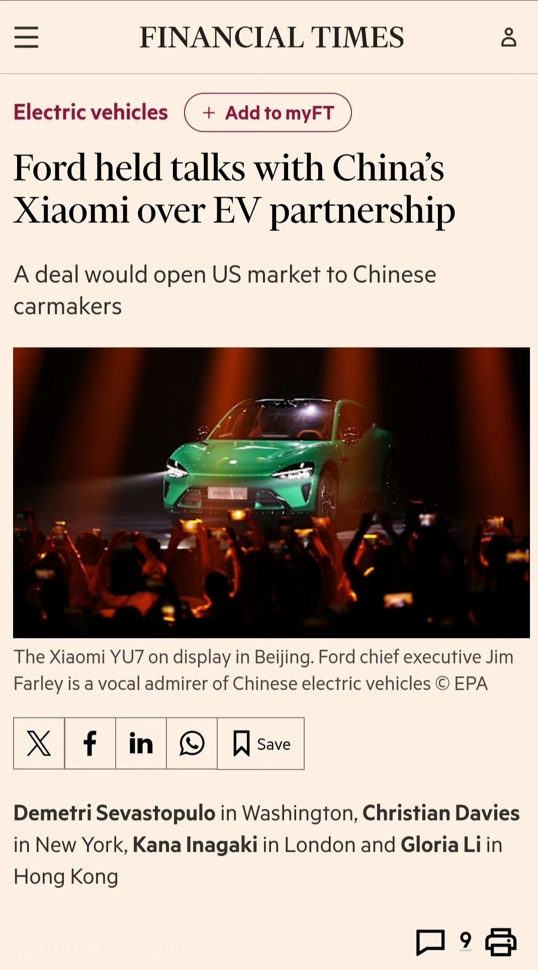 我去信息源搜了一下,是金融时报瞎搞了,援引的是“四位知情人”的说法,不是来自福特或者小米官方。目前福特直接否定报道真实性,无任何证据支撑“洽谈合资”的说法。