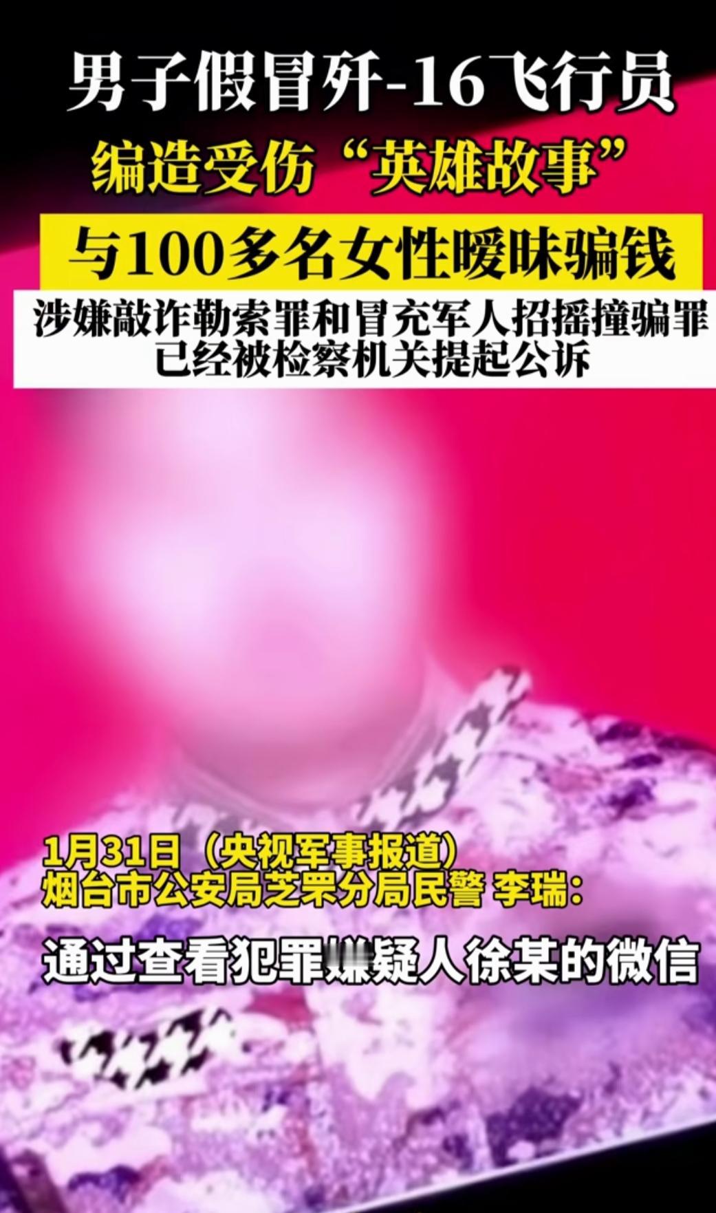 23岁厨师假冒飞行员撩百女,这场骗局戳穿多少人性软肋 山东烟台一起假冒飞行员诈骗案让人大跌眼镜:23岁厨师徐某,一人分饰介绍人、飞行员、敲诈者三角,伪造军官证、军装,编造歼-16失事受伤的英雄故事,同时与100多名女性保持暧昧,伺机骗财骗色,最终因敲诈勒索和冒充军人招摇撞骗被提起公诉。 看似拙劣的骗局,为何能让众多女性中招?本质从不是骗子手段多高明,而是他精准拿捏了人性的情感软肋和对“完美人设”的向往。飞行员自带职业光环,叠加军人的责任感、英雄的滤镜,再配上嘘寒问暖的情绪价值,很容易让人心生崇拜、放下戒备。即便有疑点,也被“军事机密”的借口搪塞,甚至有人主动为对方的漏洞找理由,这正是证实性偏见的典型表现。 更值得警惕的是,这类骗局的核心从来不是“骗术”,而是“情感操控”。骗子先打造高价值人设满足期待,再用神秘感制造稀缺,最后以紧急事态逼迫转账,一步步击穿心理防线。而受害者往往因羞于启齿选择沉默,反而助长了骗子的气焰。 此案不仅是对军人形象的亵渎,更给所有人敲响警钟:网络社交中,职业光环不等于可信度,完美人设背后可能藏着陷阱。守住底线,核实身份,拒绝陌生转账,别让对美好的期待,变成被欺骗的契机。毕竟,真正的美好从不需要刻意伪装,更不会用借口掩盖真相。假军官骗局 军人骗局