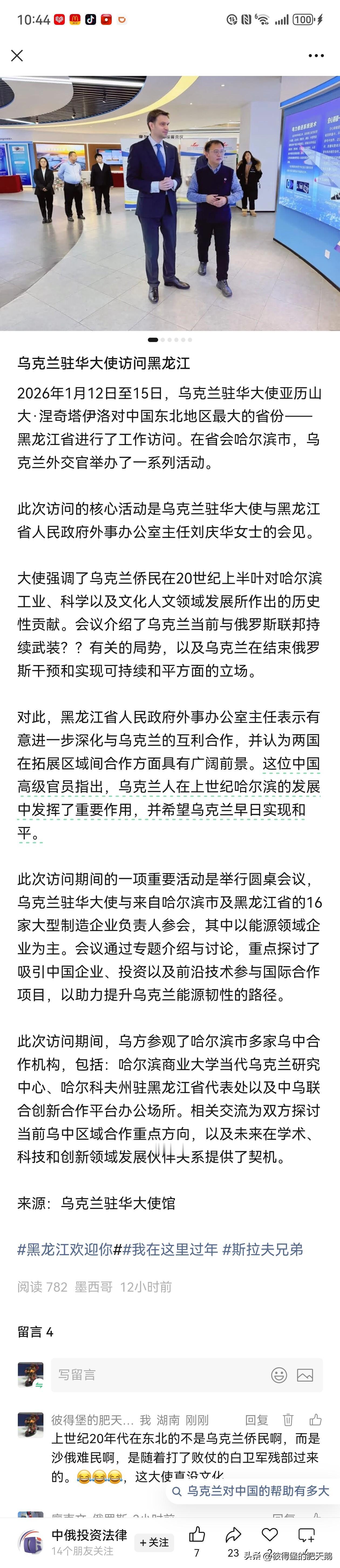 上世纪20年代在东北的斯拉夫人可不是啥乌克兰侨民啊,而是沙俄难民啊,是随着打了败仗的白卫军残部过来的。[笑哭][笑哭][笑哭][笑哭] 奉系军阀头目张宗昌手底下就有一支白俄雇佣军,是由流亡中国东北的白卫军军人组建的武装力量,约5000人。 当时可不存在国际社会公认的独立国家乌克兰,所谓的短命割据政权——由彼得留拉领导的“乌克兰人民共和国”仅存续不到两年,且在1920年前就被苏俄灭掉了。 乌克兰作为国际社会公认的独立国家的历史是从苏联解体后,也就是1991年才有的。 乌克兰驻华大使是24K纯睁眼说瞎话。 #俄乌冲突#