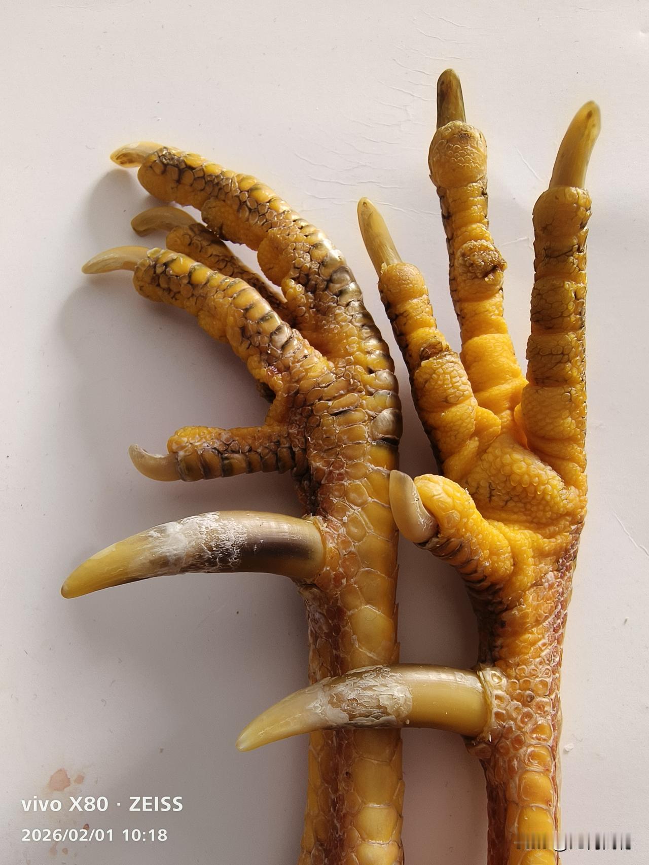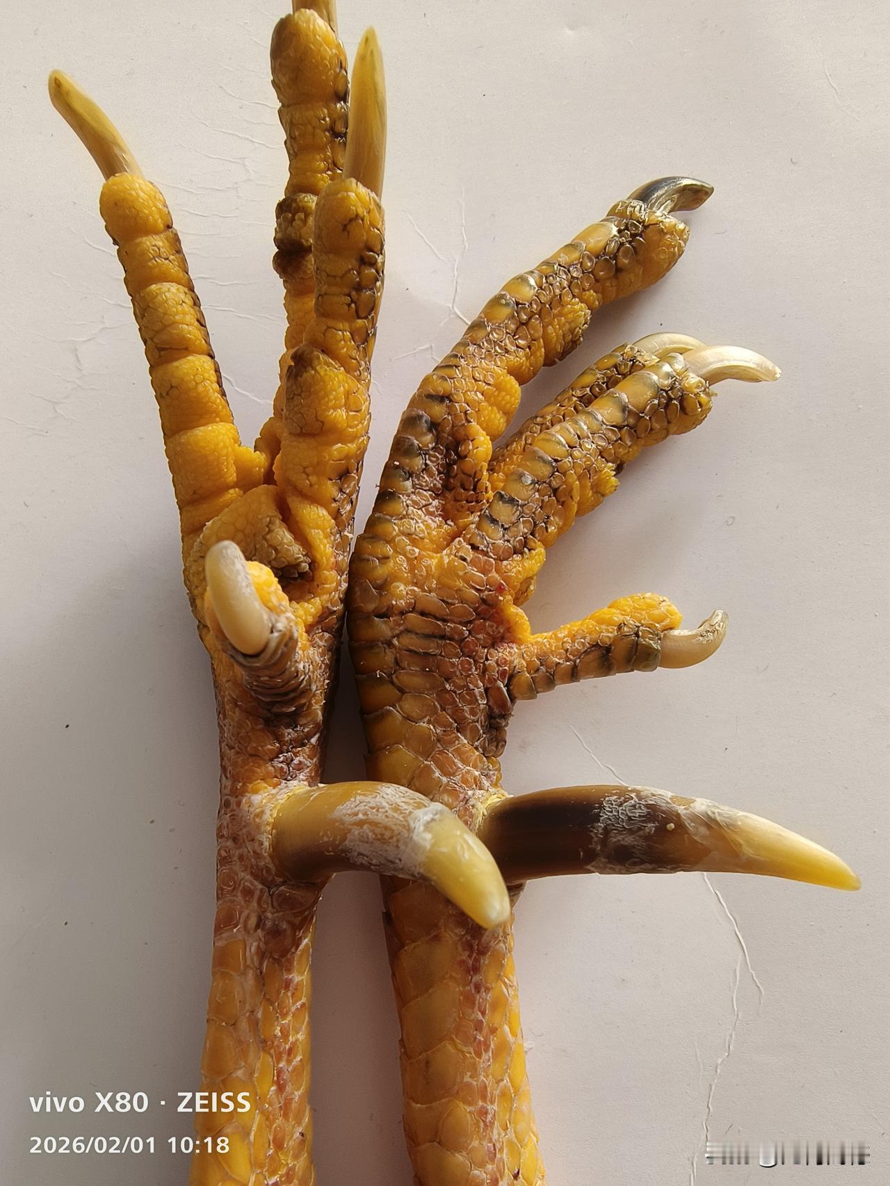 本来不想杀生了,但最终还是没有经得住这对鸡爪子的诱惑,贪心催生了杀心,兽性战胜了人性,玩物丧志的我,满心欢喜,如愿以偿,司晨报晓的老公鸡,却因为这双漂亮的爪子,丢掉了性命,也许这双爪子在别人看来一点都不漂亮,但是不知为什么,我特别喜欢这双爪子!