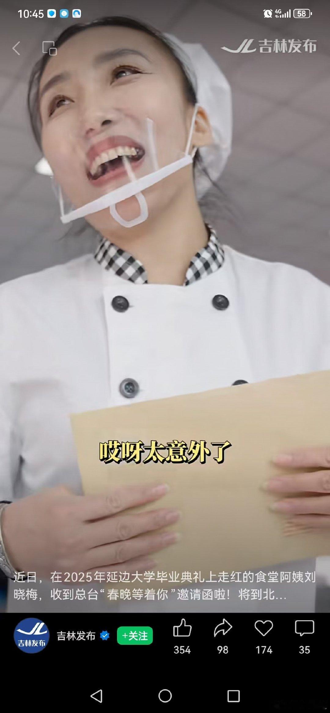 食堂阿姨水灵灵地看春晚去了 刘晓梅在春晚后台见到偶像热泪盈眶,她说带孩子看过对方不少电影,如今亲眼相见,连呼这是做梦都不敢想的事