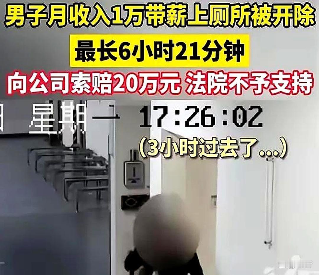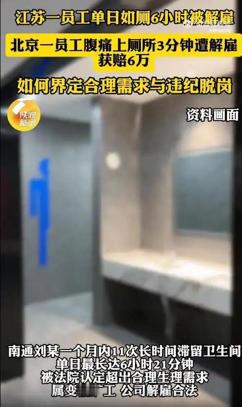 奇葩新闻:南通一员工单日如厕6小时21分钟被解雇,索赔20万遭驳回 近日,江苏南通一起劳动争议案件因“奇葩程度”引发热议,一名员工因单日如厕时长高达6小时21分钟被公司解雇,随后索赔20余万元,最终被法院驳回诉求。 据悉,当事人刘某是当地一家电路公司的5S专员,2023年2月,公司通过监控发现其频繁长时间滞留卫生间,当月累计11次,每次时长31分钟至3小时5分钟不等,单日最长达6小时21分钟,接近完整工作日。 公司面谈核实后,以其行为违反规章制度、构成变相旷工为由解雇刘某。刘某不服,先后申请劳动仲裁、提起诉讼,均诉求公司支付20余万元赔偿金,却接连败诉。法院认定,刘某行为远超正常生理需求,无证据证明其期间履职,公司解雇程序合法。网友调侃,这是把卫生间当成“摸鱼圣地”,最终为自己的任性付出了代价。