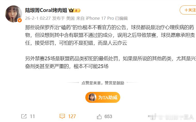 冷知识:所有四大联盟因为嗑药被禁赛的球员,都会说自己是不慎服用的。Tramadol前年1月就被进入WADA禁药清单了,到现在已经24个月了。我有一个研究生同学现在在NBA的经纪公司工作,他们会常规性的更新联盟违禁药物名单,会要求她们把禁药的名单背的比自己的月经周期还熟。球员自己不知道,经纪公司还不知道吗?乔治的经纪人Aaron Mintz手下坐拥多位NBA球员,又不是哈登那样用自己妈当经纪人的,说误服谁信?至于乔治的这些借口,都是NBA最常见的公关而已,最多就是说什么乔治努力训练,任很好之类的,这么多年NBA被禁赛的球员都是这么公关的。至于兰德尔、德拉蒙德这些人会出来给他说话,无非是因为他们是一个经纪人代言的球员而已。至于乔治的心理问题,这也是典型的借口,如果他真的有心理问题,完全可以向联盟申请用药豁免,而乔治没有,说明他在心理治疗中并不是必须服用这类药物,说白了就是没病。那么我们来分析一下,乔治近些年经历了什么?首先是伤病不断,表现大幅度下滑,被球迷口诛笔伐。其他乔治也急需用自己的表现,证明自己配得上刚刚签下的大合同,所以才会想到一些高风险高回报的办法。另外,Tramadol对于运动员最大的作用,就是提高运动表现或掩盖疼痛,在参考一下最近两年的伤病史,不是那疼就是这疼,反正就是一直不打球,他的服药动机其实很清楚。保罗乔治禁赛25场