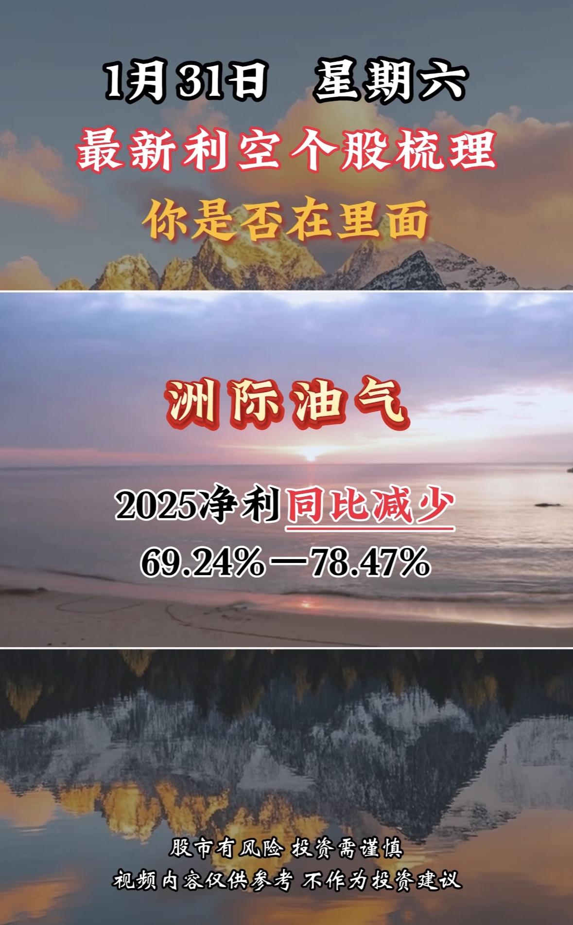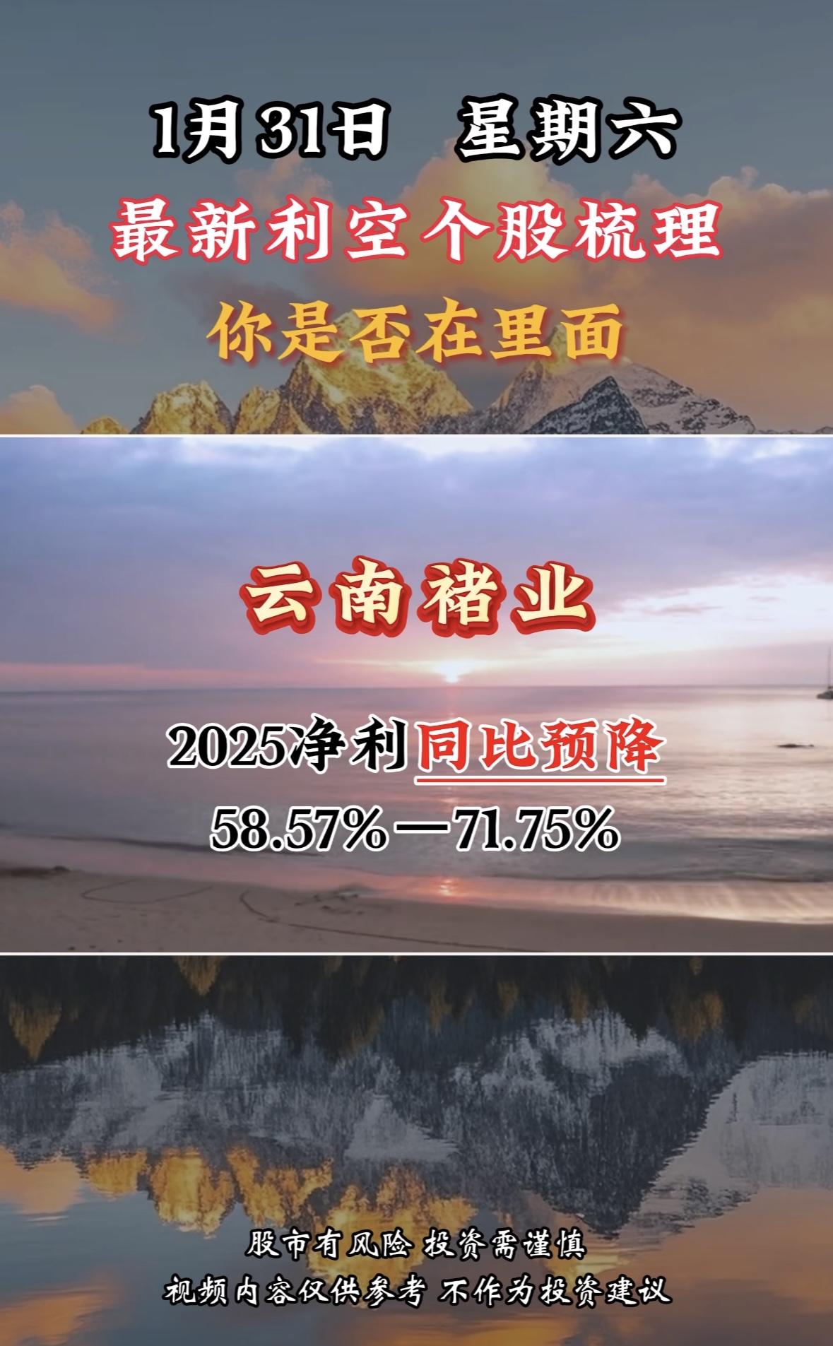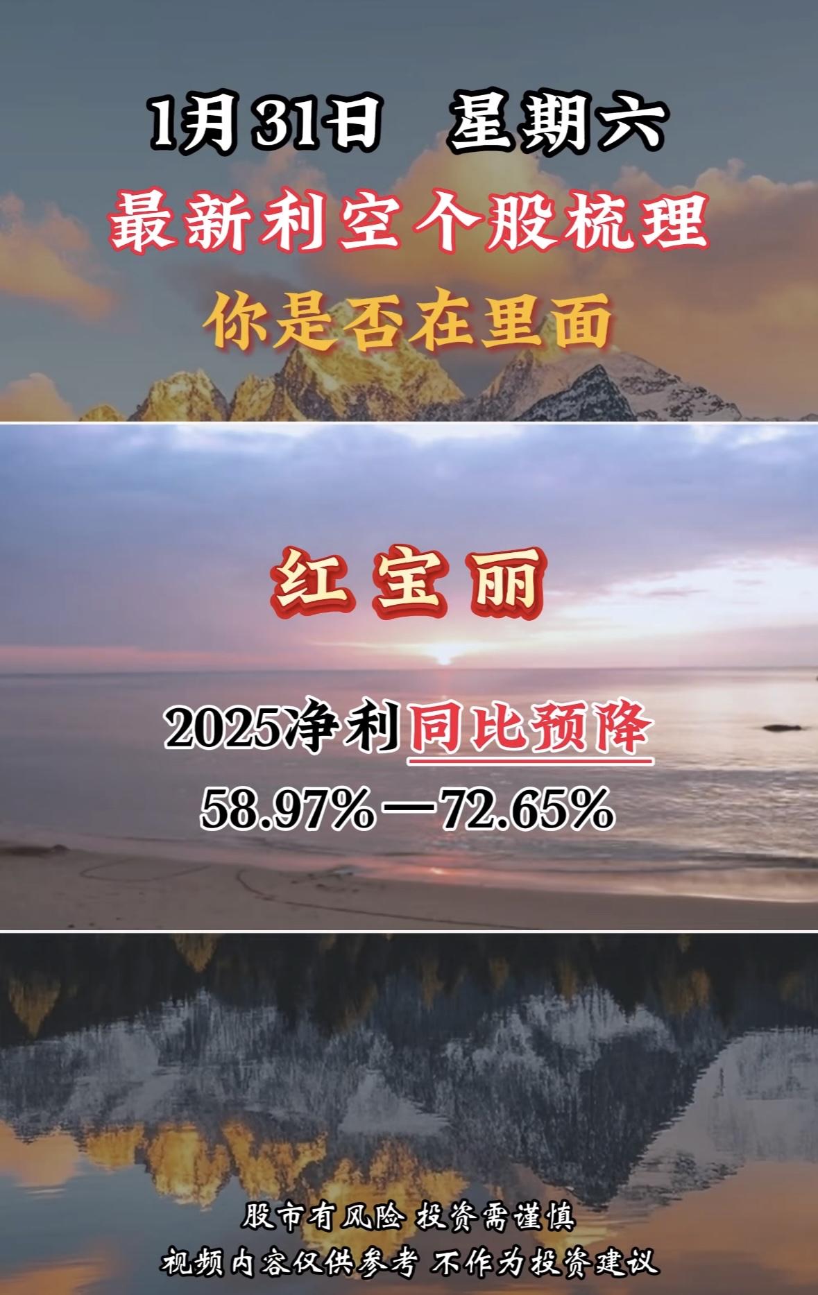 1月31日最新利空个股梳理,你中招了吗?🌄💰 "红宝丽净利预降超五成,股市风险需警惕,投资前务必谨慎评估。" "红宝丽业绩预警,净利或大幅下滑,股市风险高需警惕,投资决策请谨慎参考市场信息。"