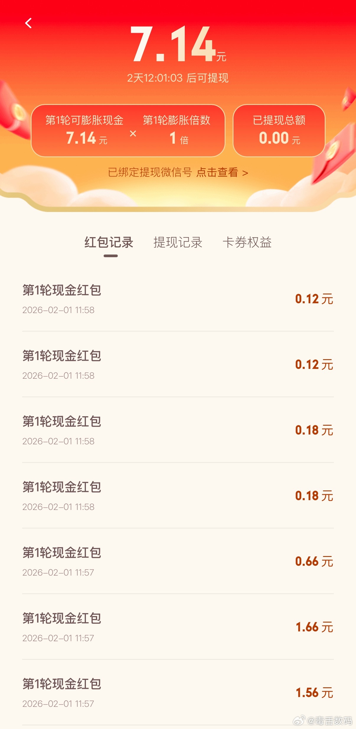 元宝红包领了7块多