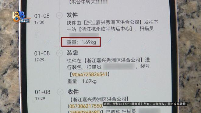 快递寄来时显示重量是1.2千克,衣服是塑料袋包装,寄回去时显示的是1.69千克。