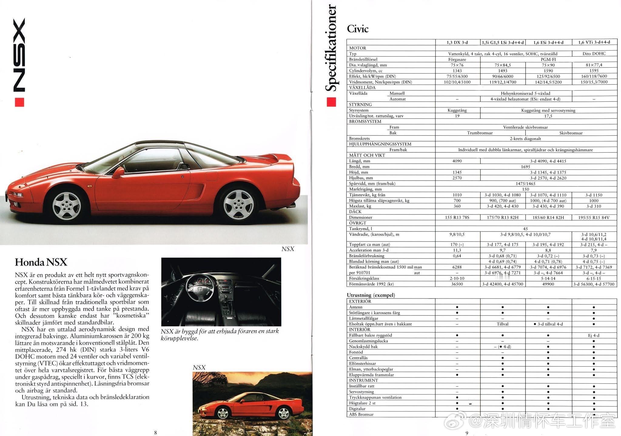 1992本田汽车销售型录,现在看回来款款已经是经典!