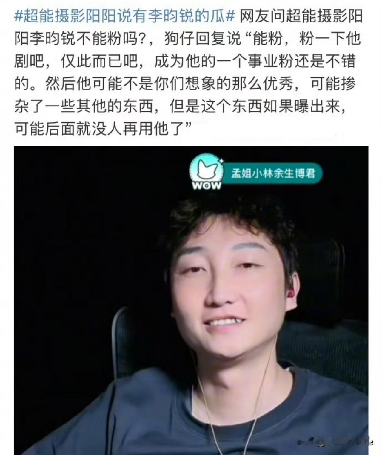 2月1日,娱记说昀牵孟绕不可能是真的 “女方肯定不希望这么一类人是她的另一半” 这个娱记老说李昀锐不直,我也真是服了! 从去年李昀锐在《九重紫》中崭露头角,他就致力于说李昀锐不直,一直到今天还在说这话,李昀锐大学时期有过女朋友,交往时间不短,女方后面貌似也参加过选秀,算半个圈内人,李昀锐大火,也不见人出来说话,就这样一个人,他不直,他能不直到哪去? 另一个娱记还说昀牵孟绕是真的,让大家少打扰呢!