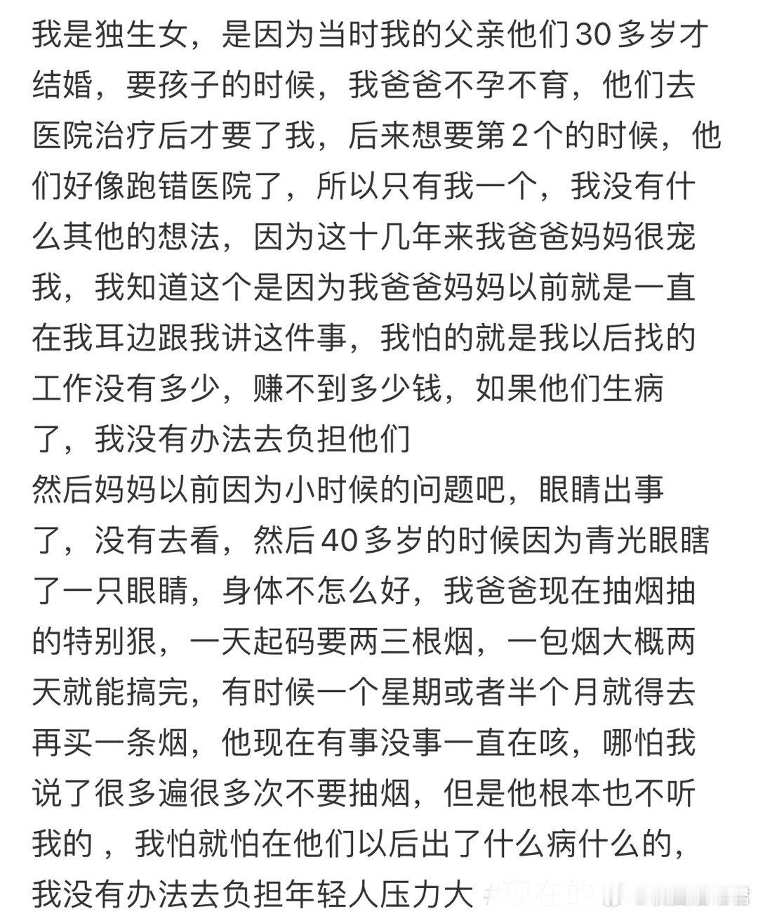 刚大一,但是父母一个56一个52我都不敢想我以后压力大成什么样