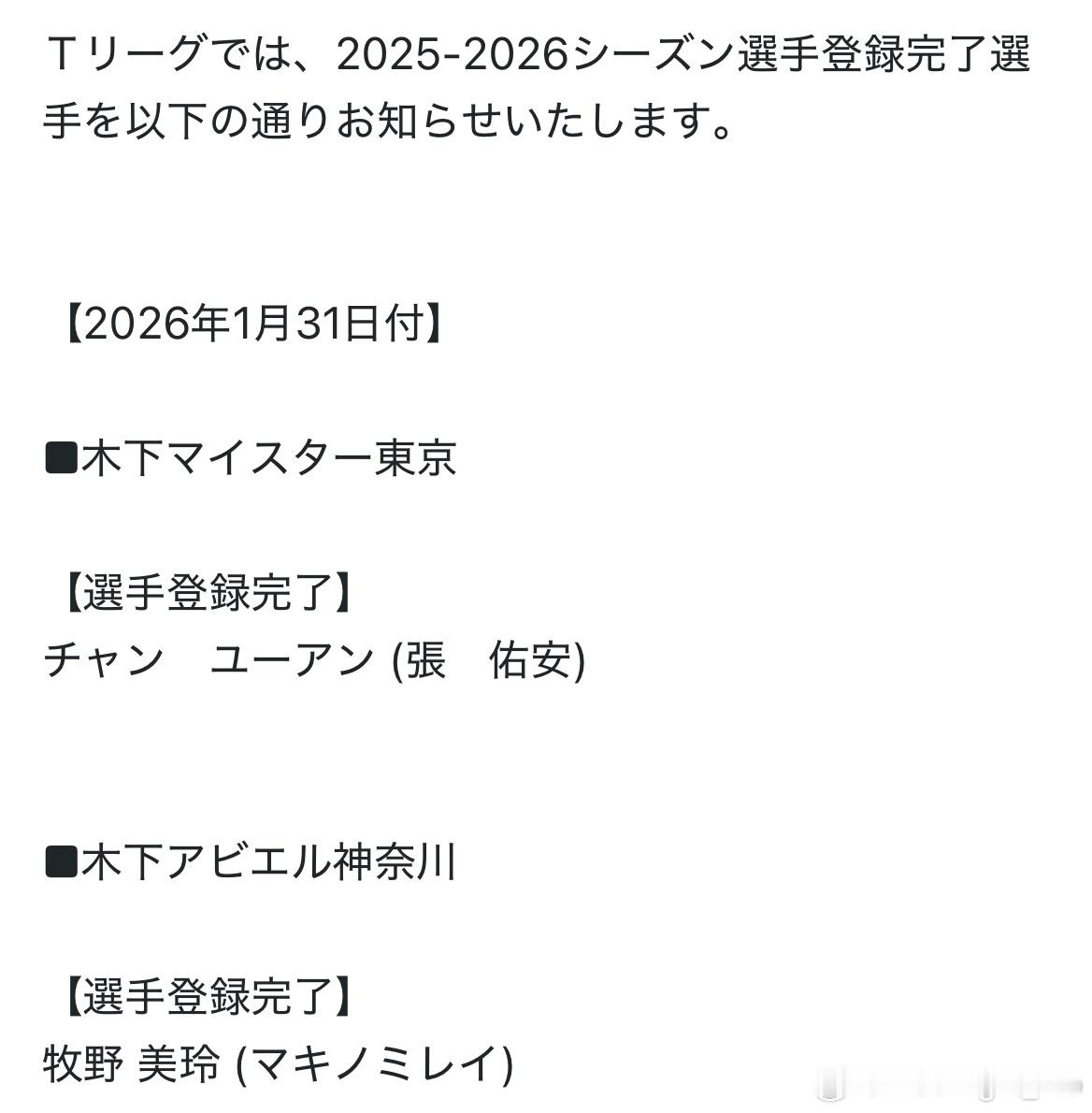 张佑安 T联赛2025-2026赛季与木下东京俱乐部签约