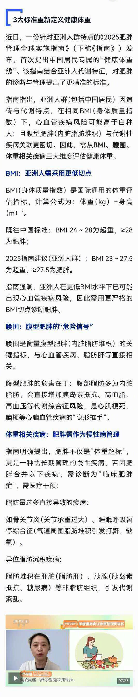 【身体的两个尺寸与健康密切相关】腰围每增加1厘米心衰风险增加4% 研究发现,腹型肥胖者的心梗、脑梗风险较普通肥胖者更高,且可能缩短预期寿命,颈围过粗则暗藏多重健康隐患。如何判断自身风险?如何健康减重?一起来看↓(CCTV生活圈)