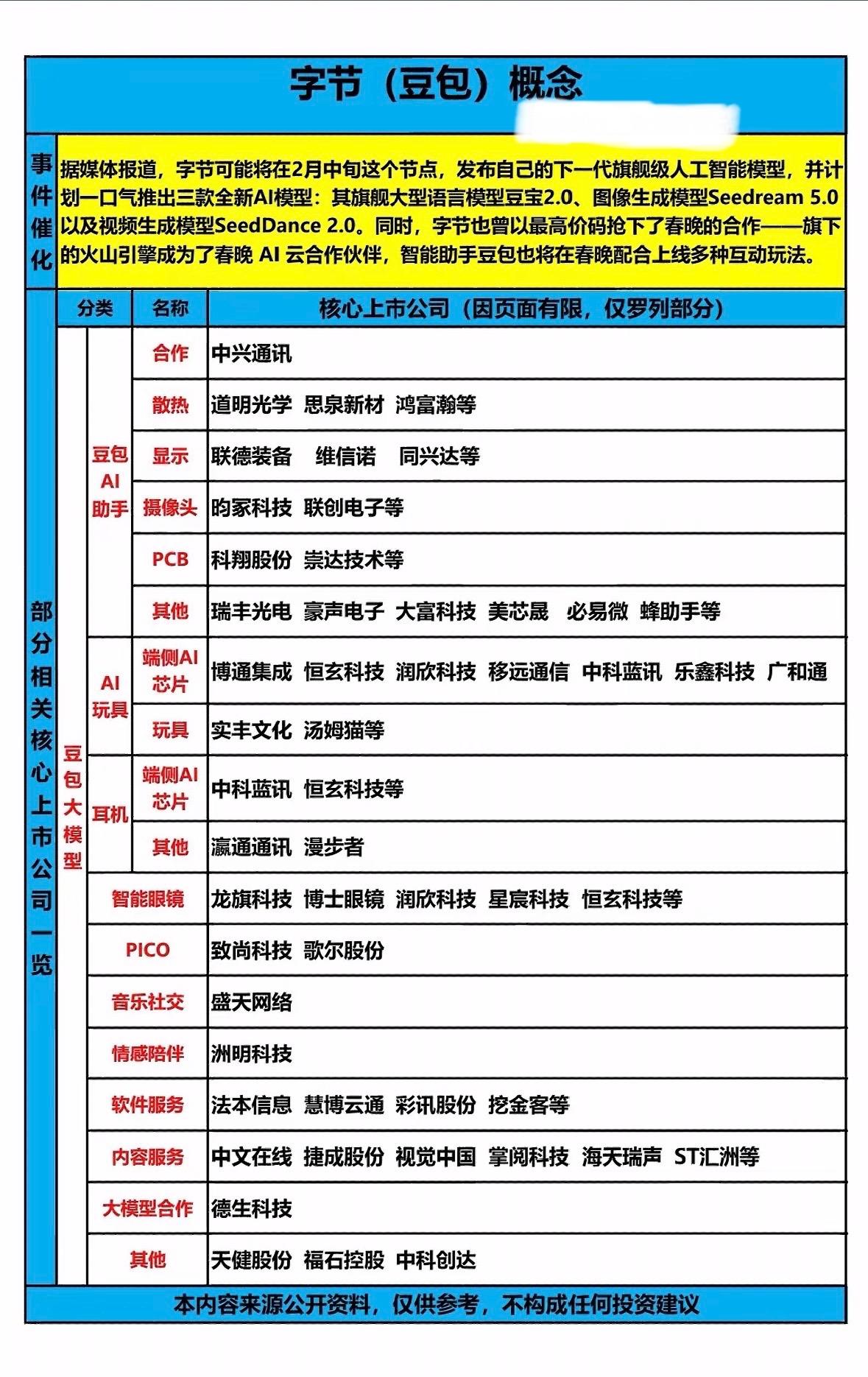 字节(豆包)概念股一览,AI合作公司大揭秘! 字节将发布豆包2.0等三款AI模型,联手春晚推互动玩法,涉及芯片、显示等多领域合作。